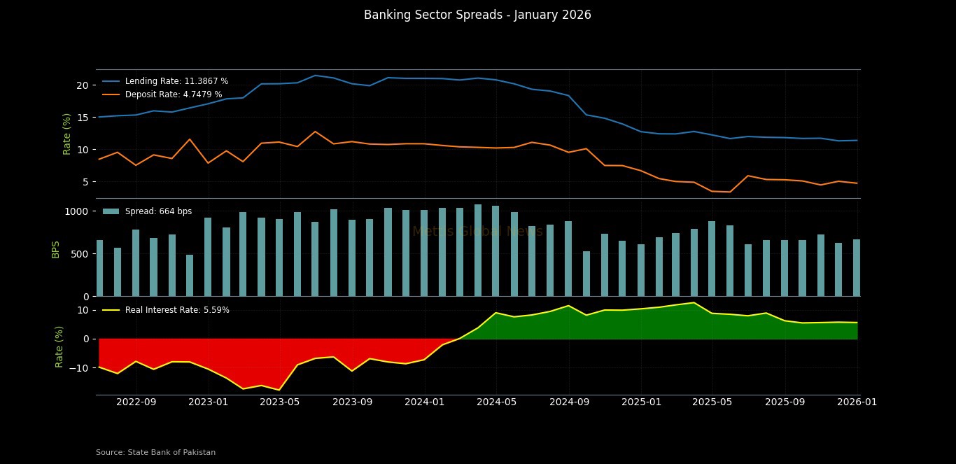 Accordingly, the banking sector spread increased by 37bps to 664bps in January 2026 compared to a spread of 627bps last month.