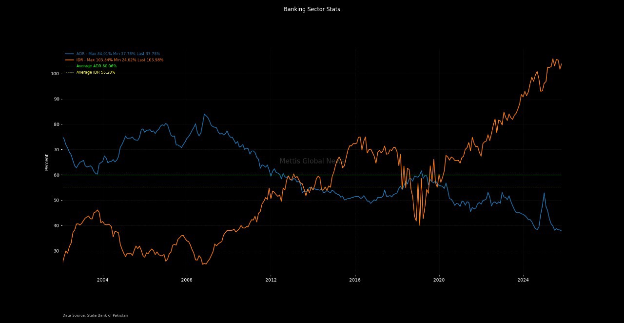Most significantly, the Advance-to-Deposit Ratio (ADR) has collapsed from 60% to 39.2%, while the Investment-to-Deposit Ratio (IDR) has surged from 40% to 101.9%, indicating a structural pivot away from private sector lending toward government securities.