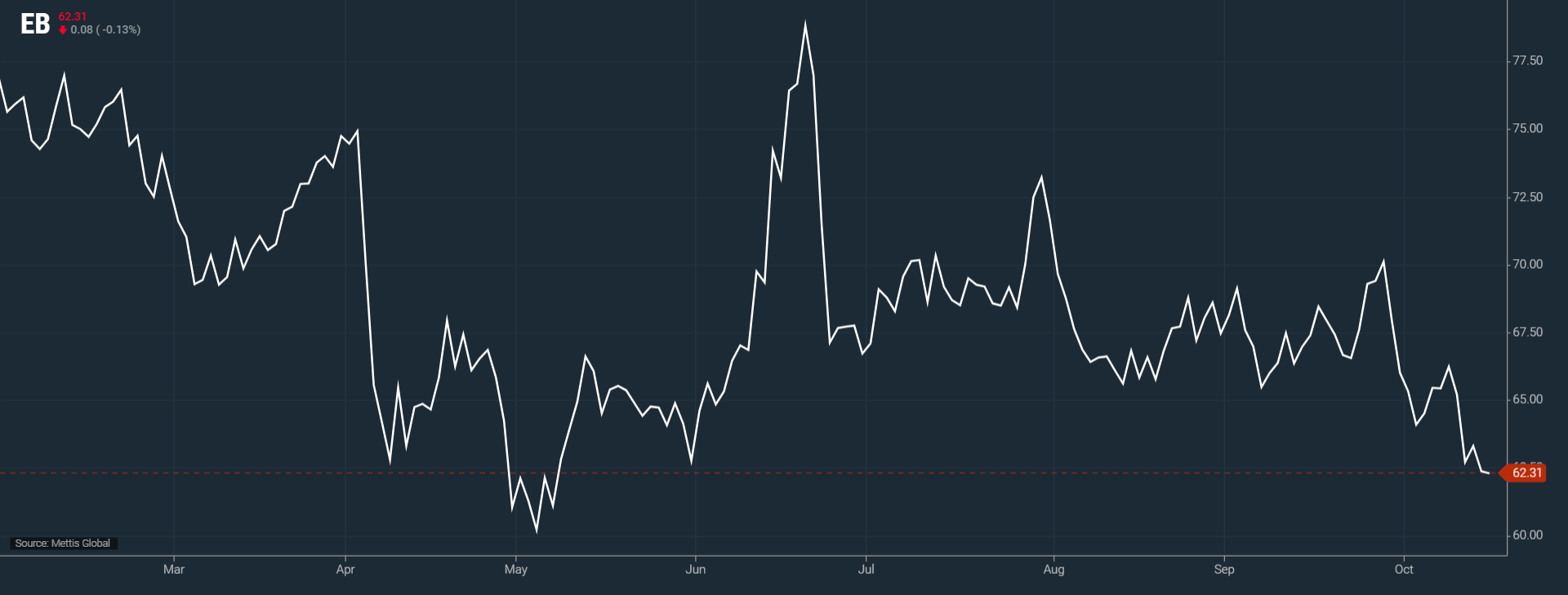 BRENT CRUDE | 62.45 | 62.54 62.02 | 0.06 0.10% |