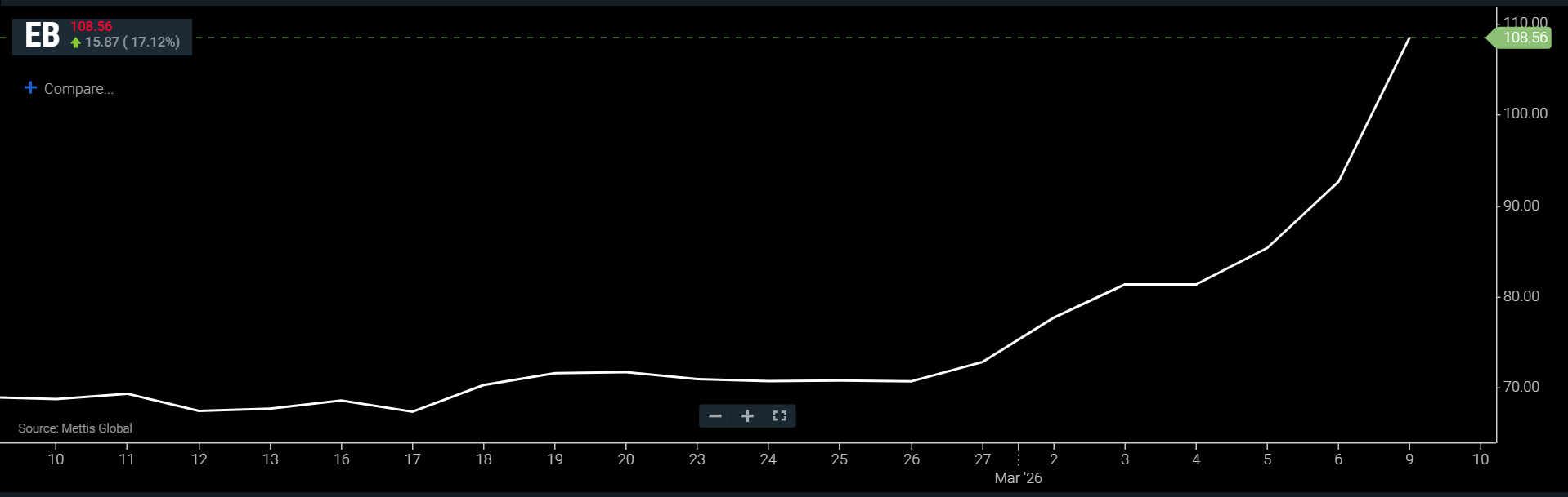 | BRENT CRUDE | 107.04 | 119.50 99.00 | 14.35 15.48% |