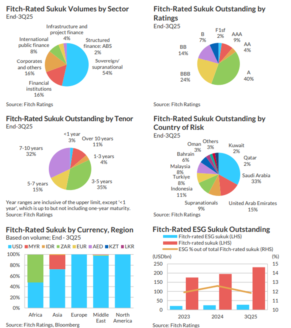 Fitch reported 275 sukuk outstanding and 98 sukuk programmes at the end of September 2025.