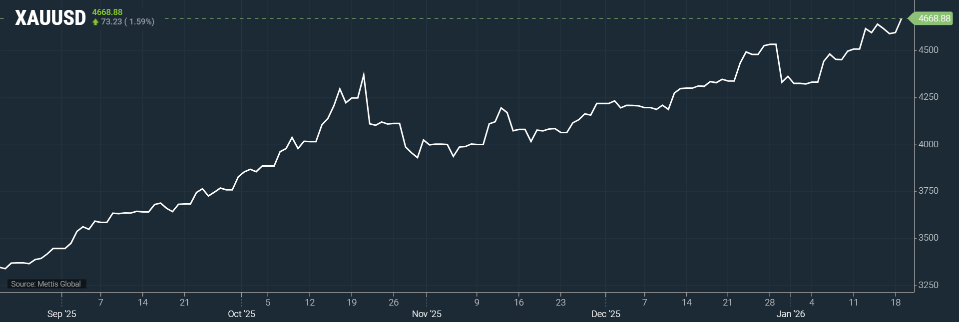 $4,669.90 per ounce, showing heightened demand for safe-haven assets.