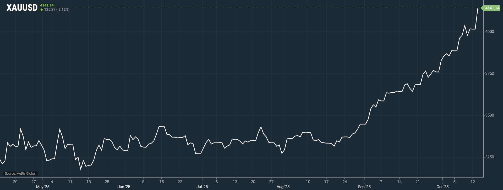 $4,100 mark for the first time this year, with prices now up 58% year-to-date.