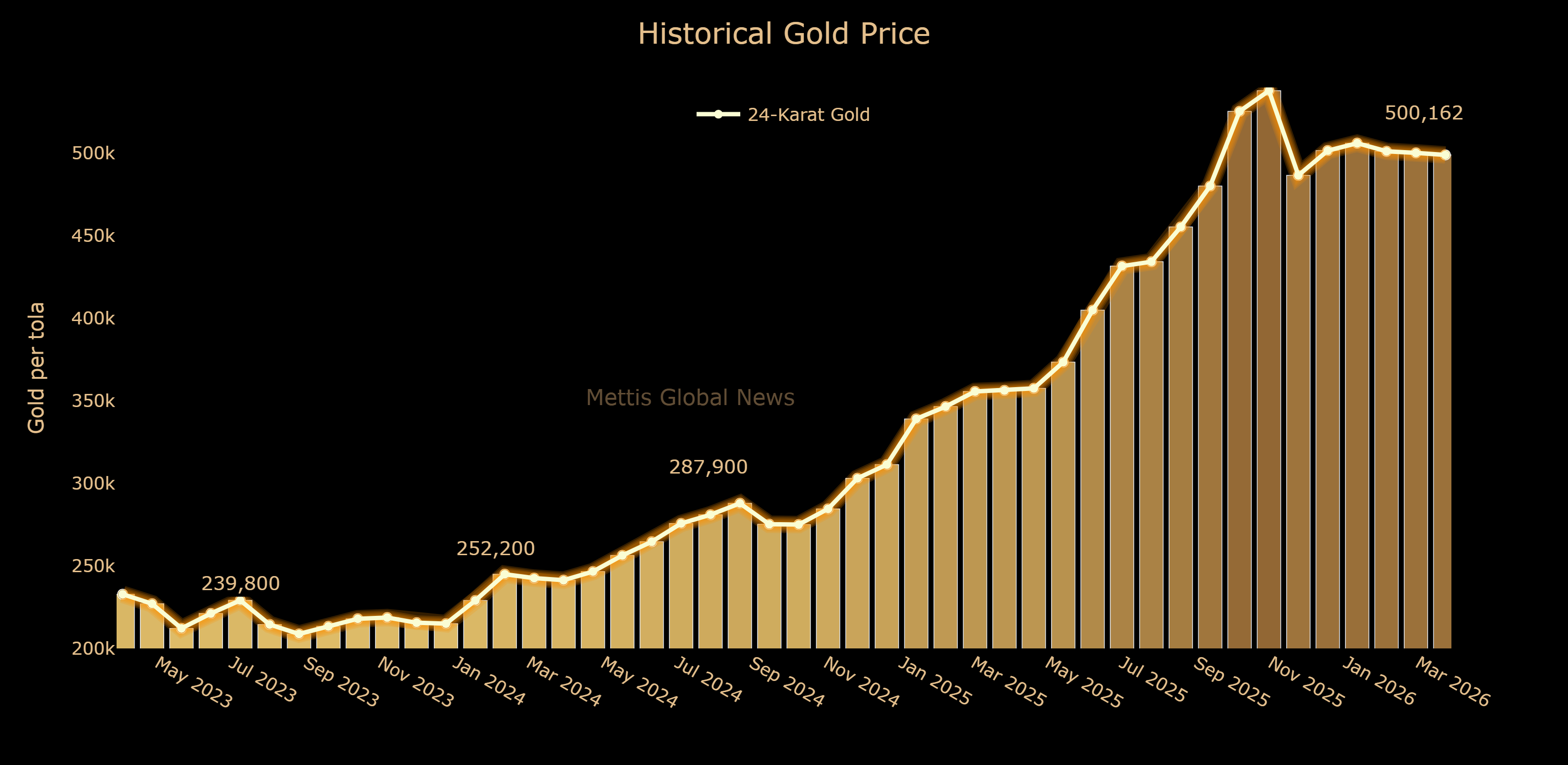 | PKR (24-karat per tola) | Apr 22, 2026 | Apr 21, 2026 | DoD | 1 Month | FYTD | CYTD |
