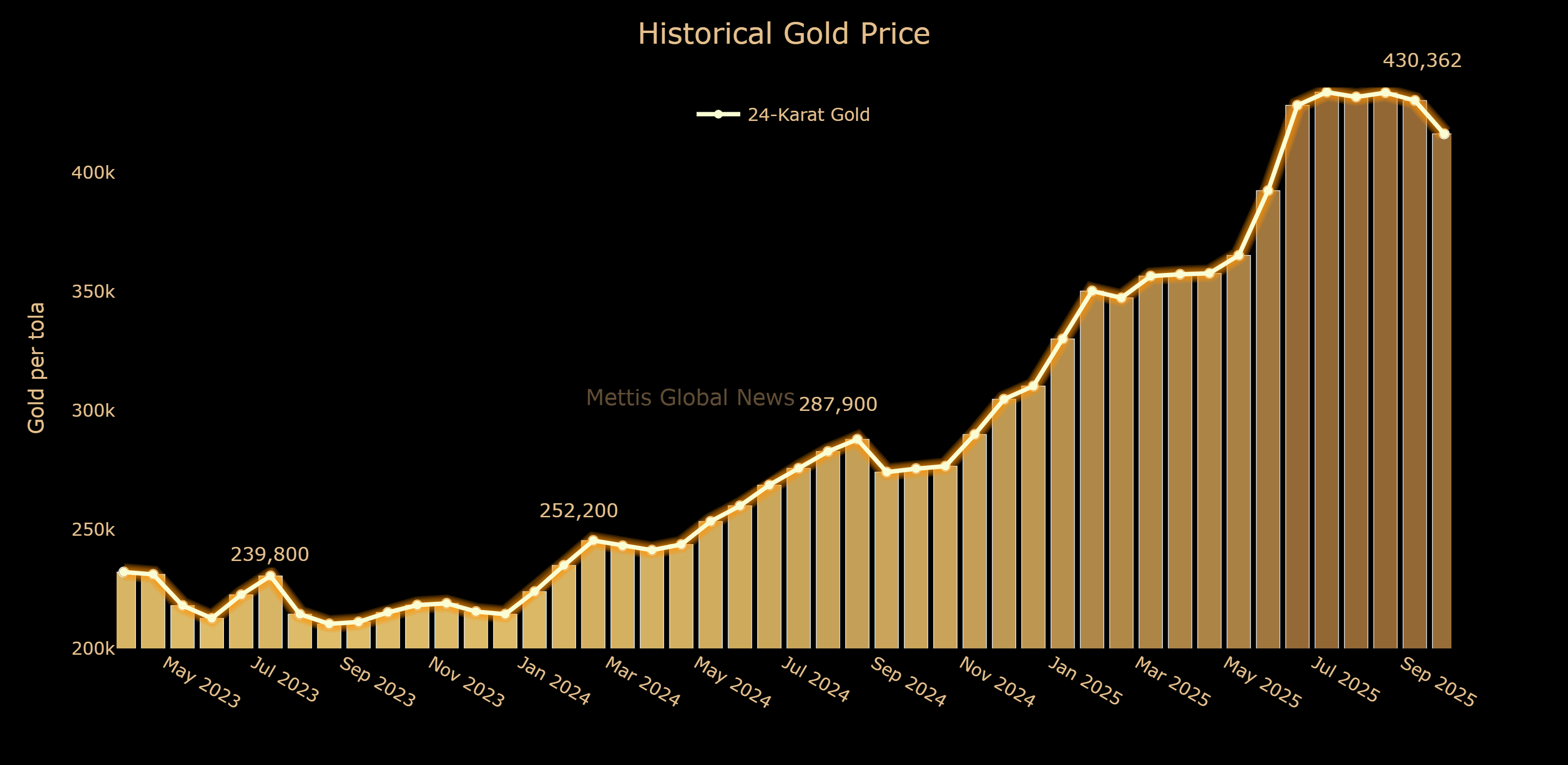 | PKR (24-karat per tola) | Oct 28, 2025 | Oct 27, 2025 | DoD | 1 Month | FYTD | CYTD |