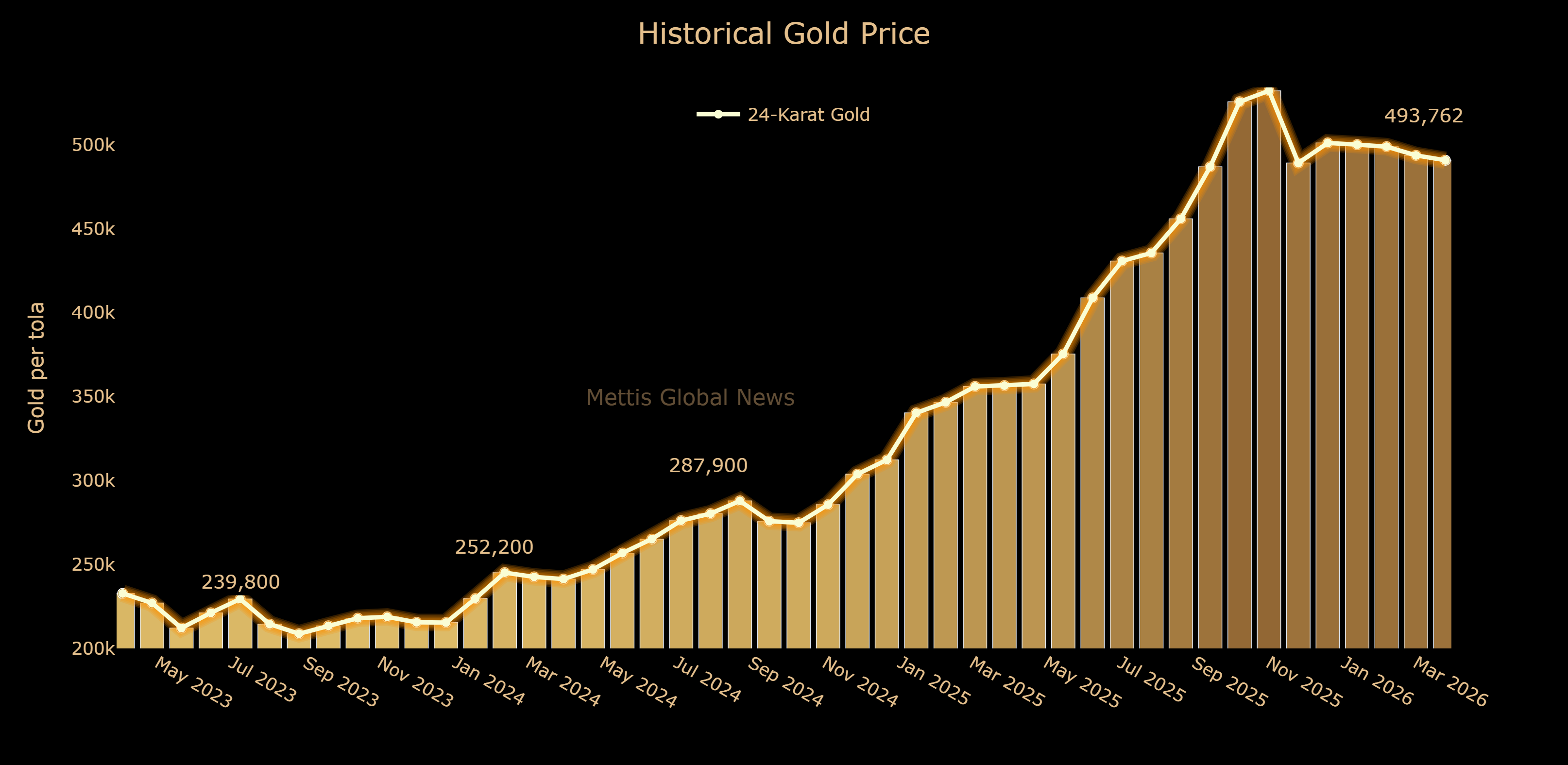 | PKR (24-karat per tola) | Apr 24, 2026 | Apr 23, 2026 | DoD | 1 Month | FYTD | CYTD |
