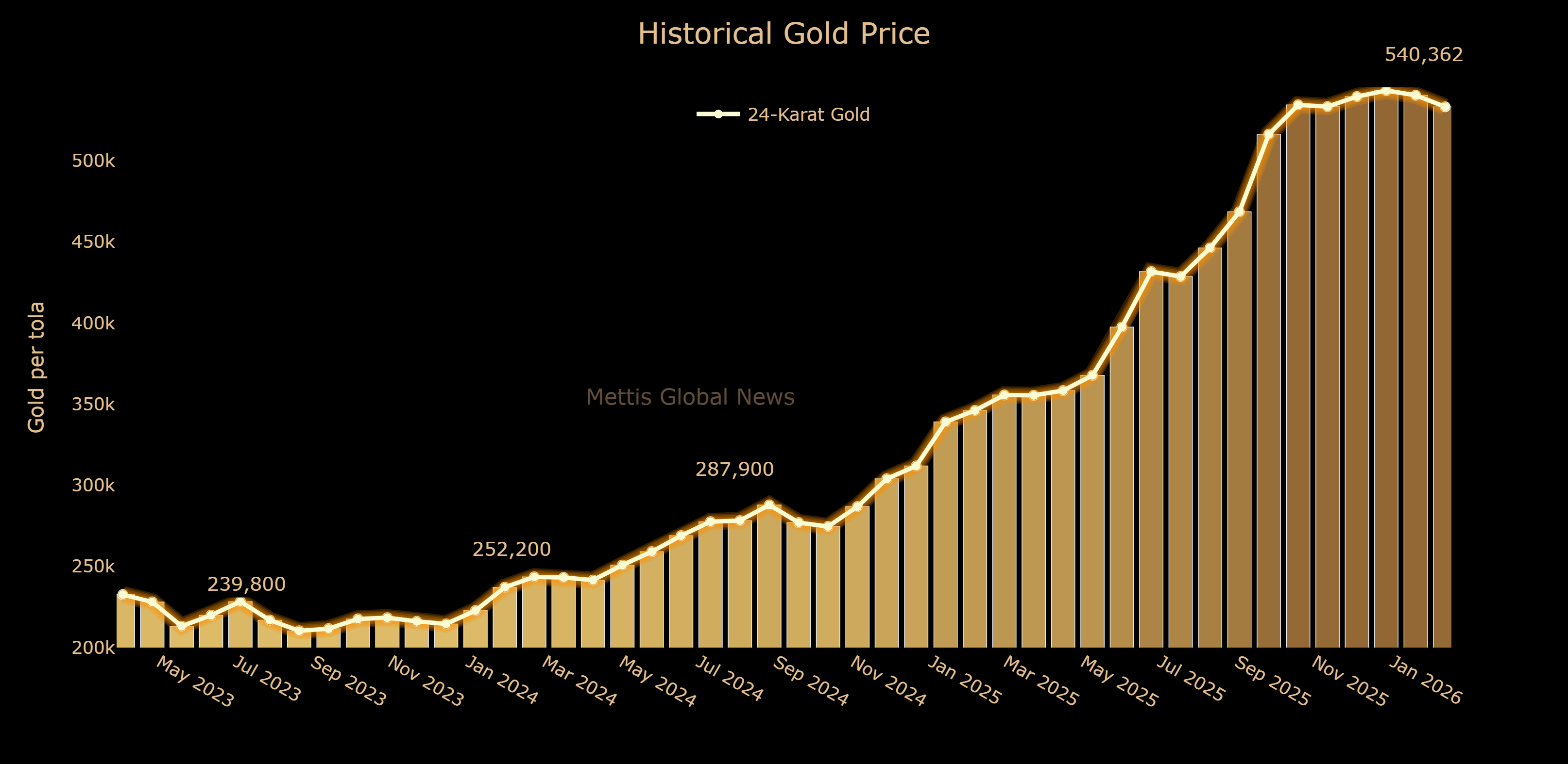 | PKR (24-karat per tola) | Mar 13, 2026 | Mar 12, 2026 | DoD | 1 Month | FYTD | CYTD |