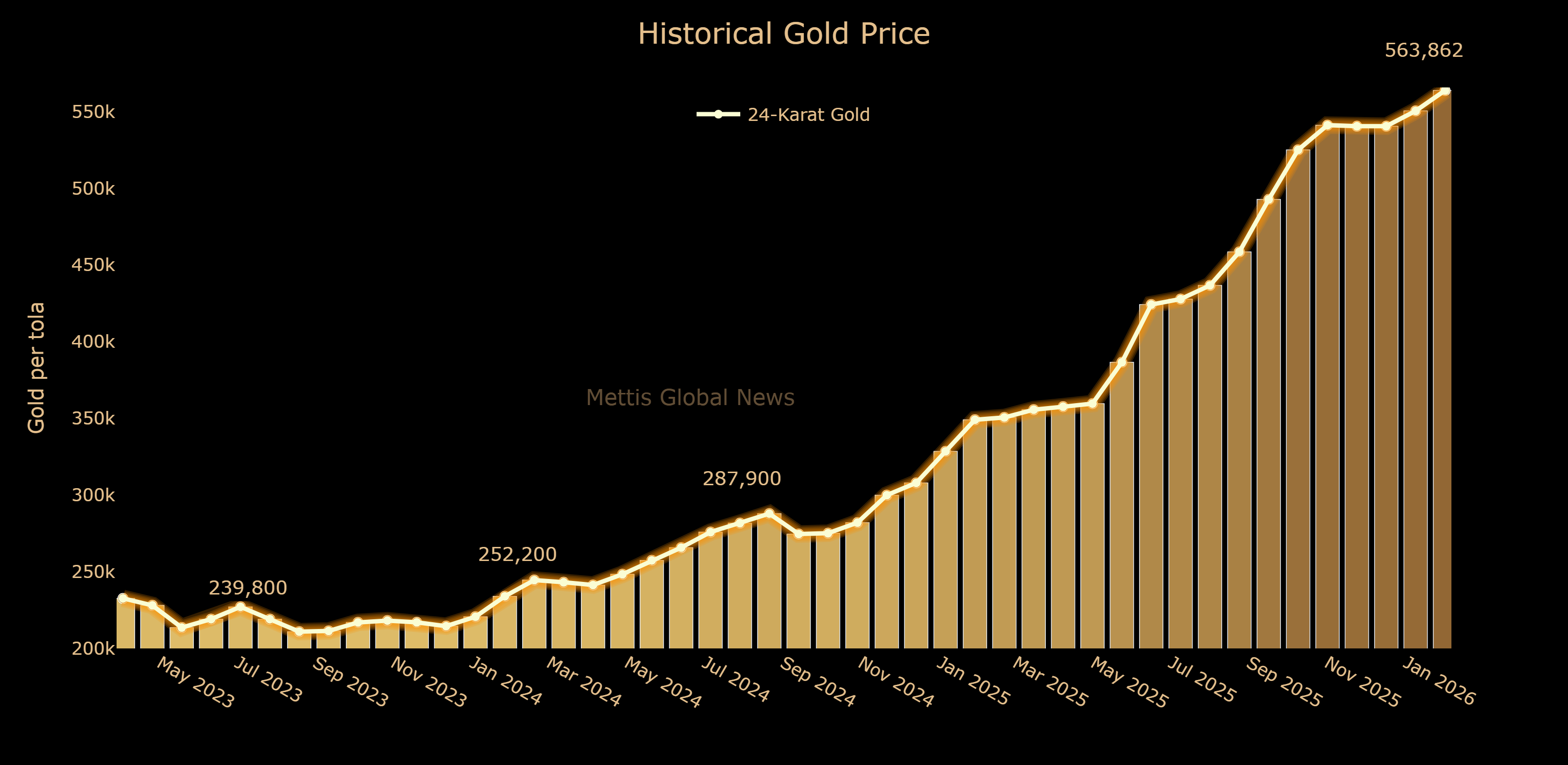 | PKR (24-karat per tola) | Mar 02, 2026 | Feb 28, 2026 | DoD | 1 Month | FYTD | CYTD |