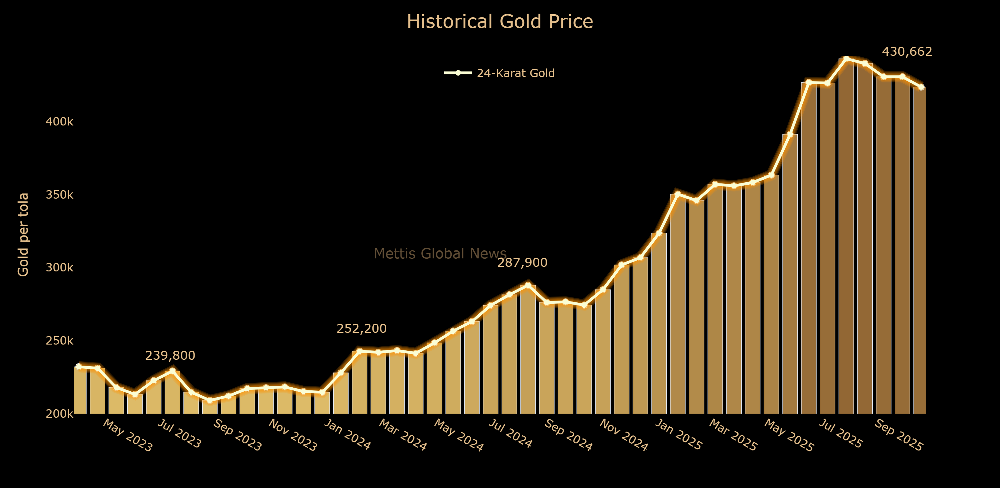 | PKR (24-karat per tola) | Nov 19, 2025 | Nov 18, 2025 | DoD | 1 Month | FYTD | CYTD |