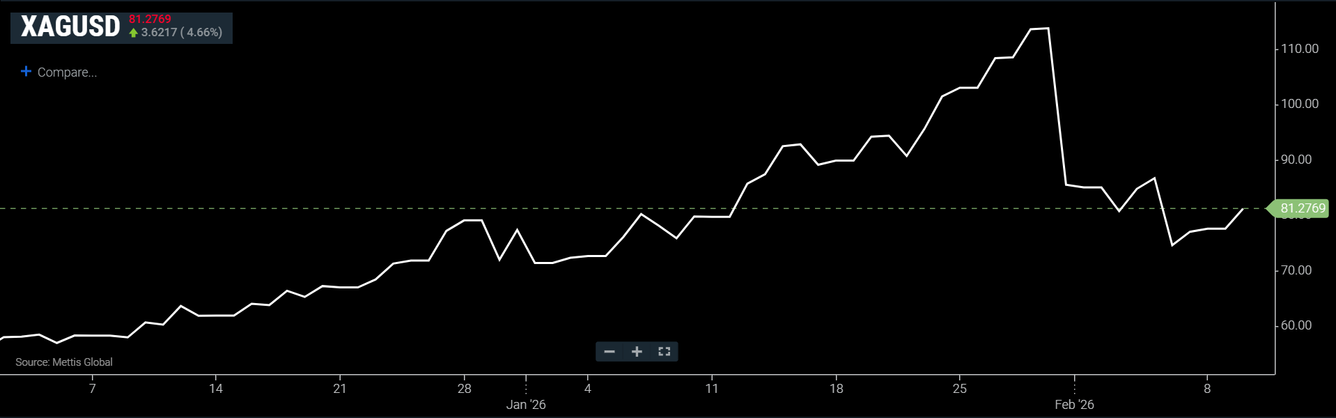 Silver prices were more volatile, the metal had previously reached an all-time high close to $122 per ounce late last month, and is trading around Rs81.2 an ounce.