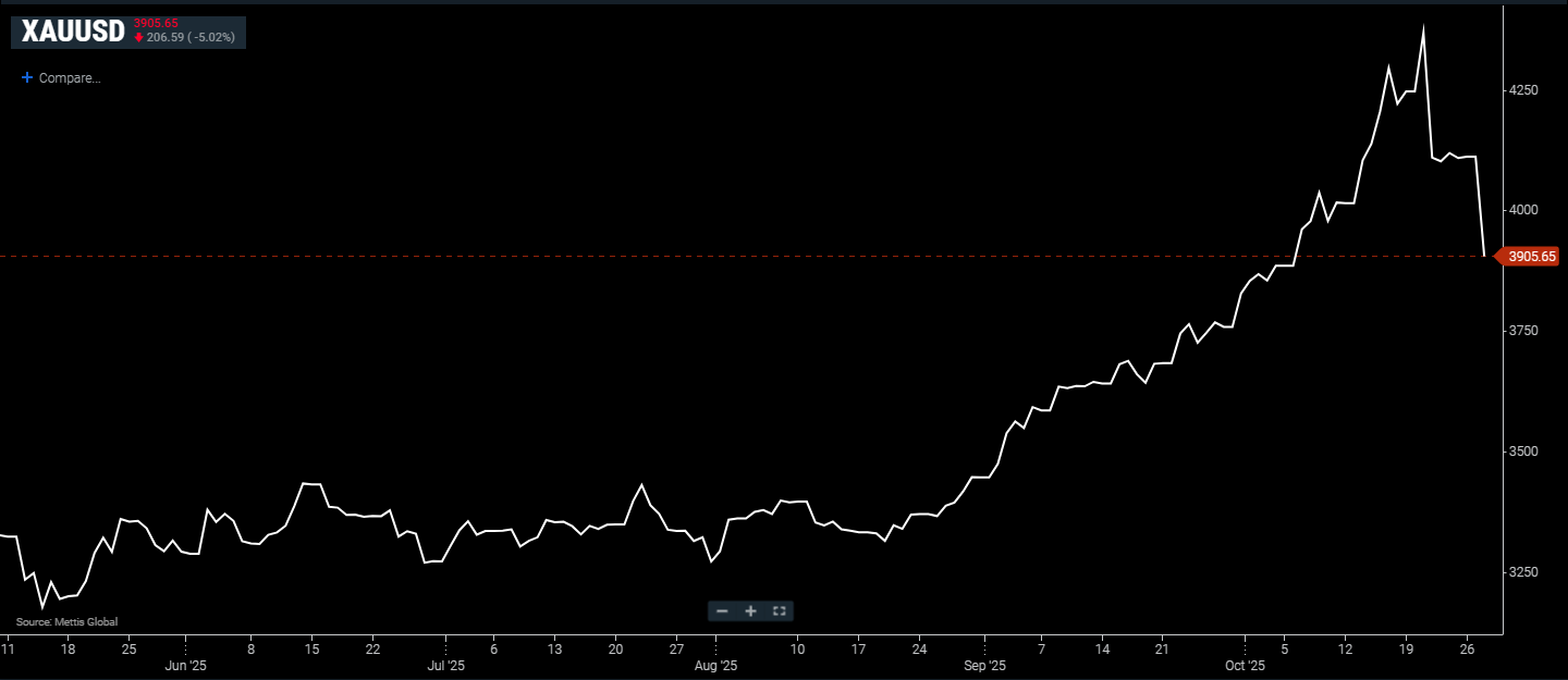 October 28, 2025 (MLN): Gold prices have retreated sharply after reaching record highs