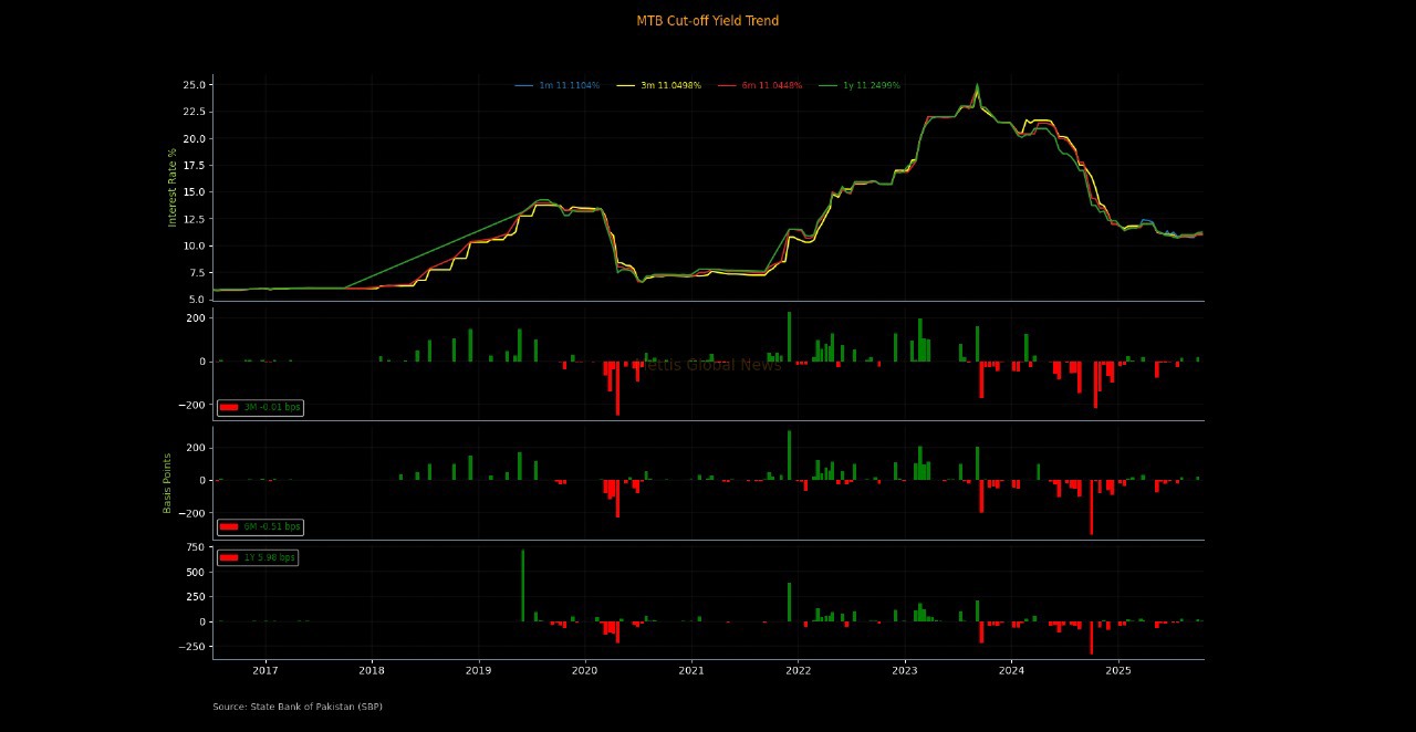 October 16, 2025 (MLN): The government of Pakistan successfully mobilized ₨933.76 billion through the latest auctions of Market Treasury Bills (MTBs) and Pakistan Investment Bonds – Floating Rate (PIBs-FR), according to data released by the State Bank of Pakistan (SBP).