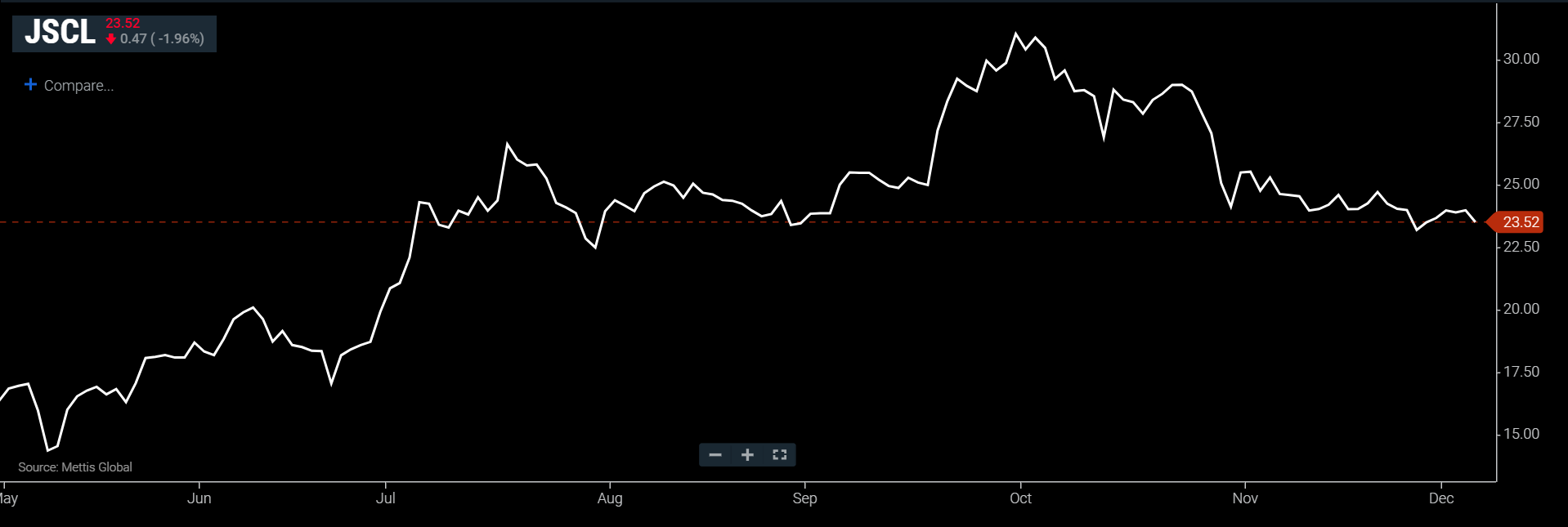 At the time of writing, JSCL is being traded at Rs23.52, down Rs0.47 (-1.96%).