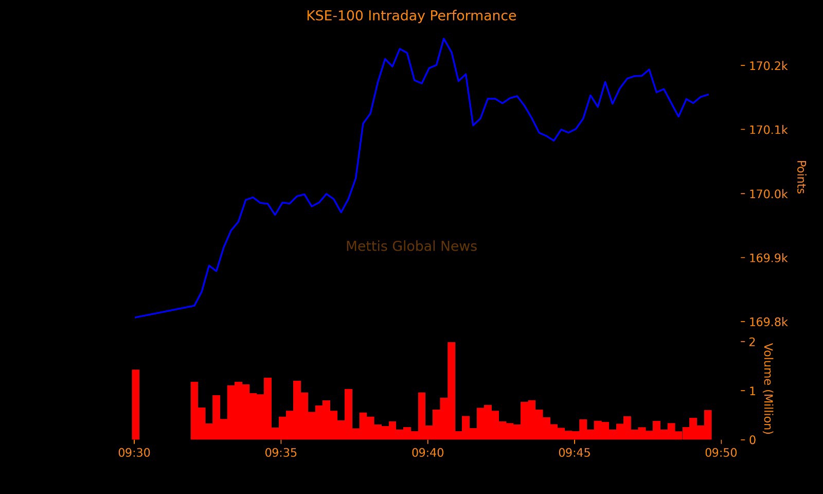 By 9:50 AM, the index was hovering around 170,164.63, up 708.25 points or 0.42%.