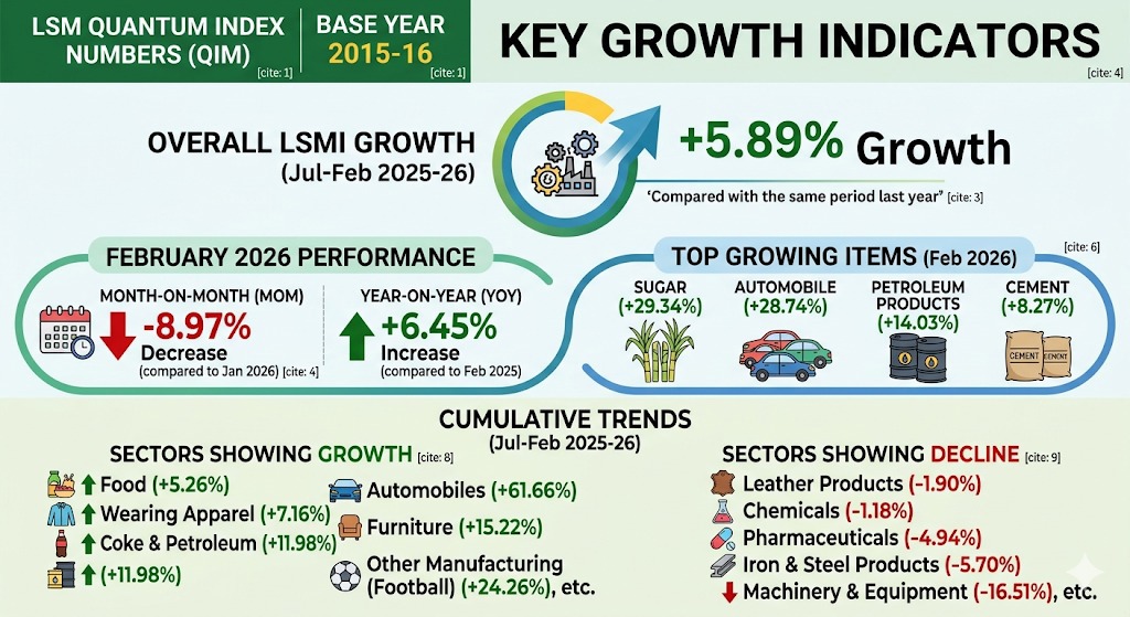 April 16, 2026 (MLN): Pakistan's large-scale manufacturing sector maintained its upward trajectory in February 2026, with the Quantum Index of Manufacturing (QIM) reaching 131.50, showing continued industrial momentum driven by strong performances in automobiles, sugar, and petroleum products.