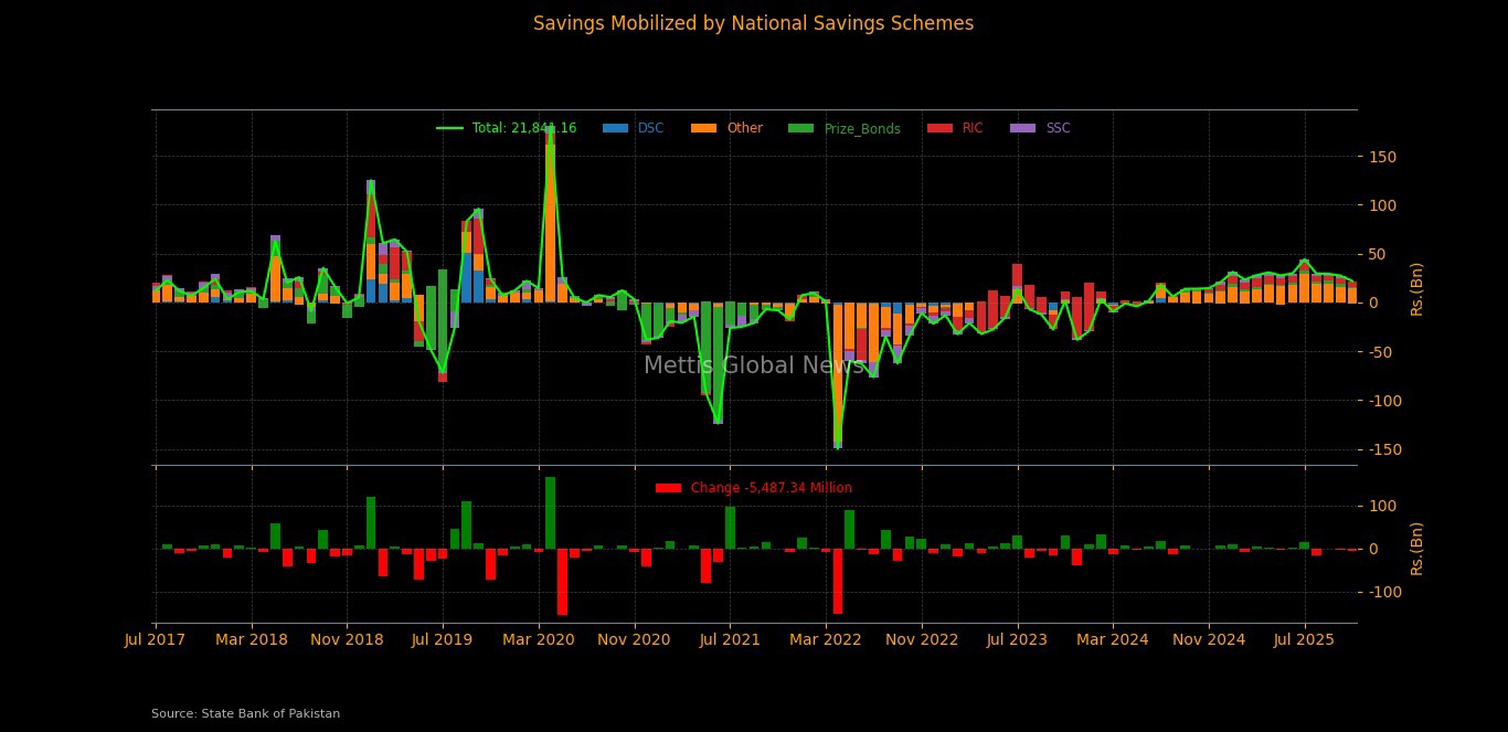 January 06, 2026 (MLN): Pakistan's National Savings Schemes recorded net inflows of Rs21.8 billion in November 2025, which marks a decline from the previous month, according to State Bank of Pakistan data.
