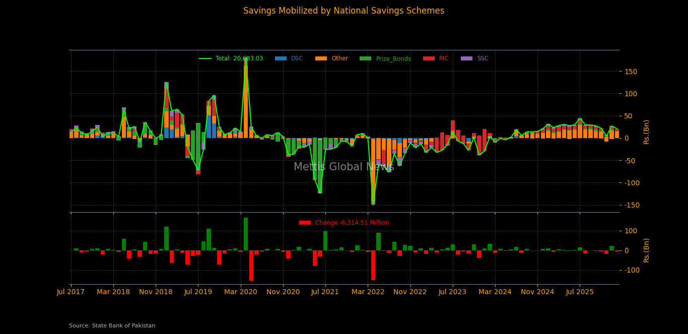April 08, 2026 (MLN): Pakistan's national savings mobilisation through government-run schemes showed signs of fatigue in February 2026, with net inflows falling to Rs20.69 billion, a sharp 23.4% decline from the Rs27.01 billion recorded in January 2026.