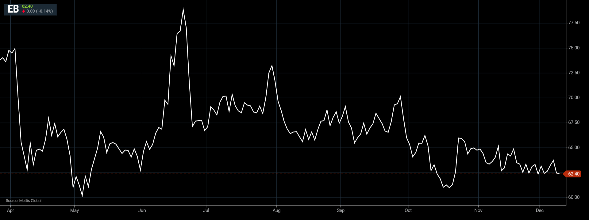| BRENT CRUDE | 62.48 | 62.55 62.24 | -0.01 -0.02% |