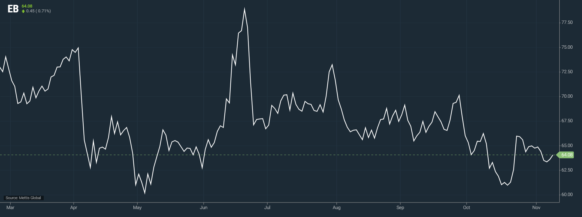 | BRENT CRUDE | 64.17 | 64.19 63.60 | 0.54 0.85% |