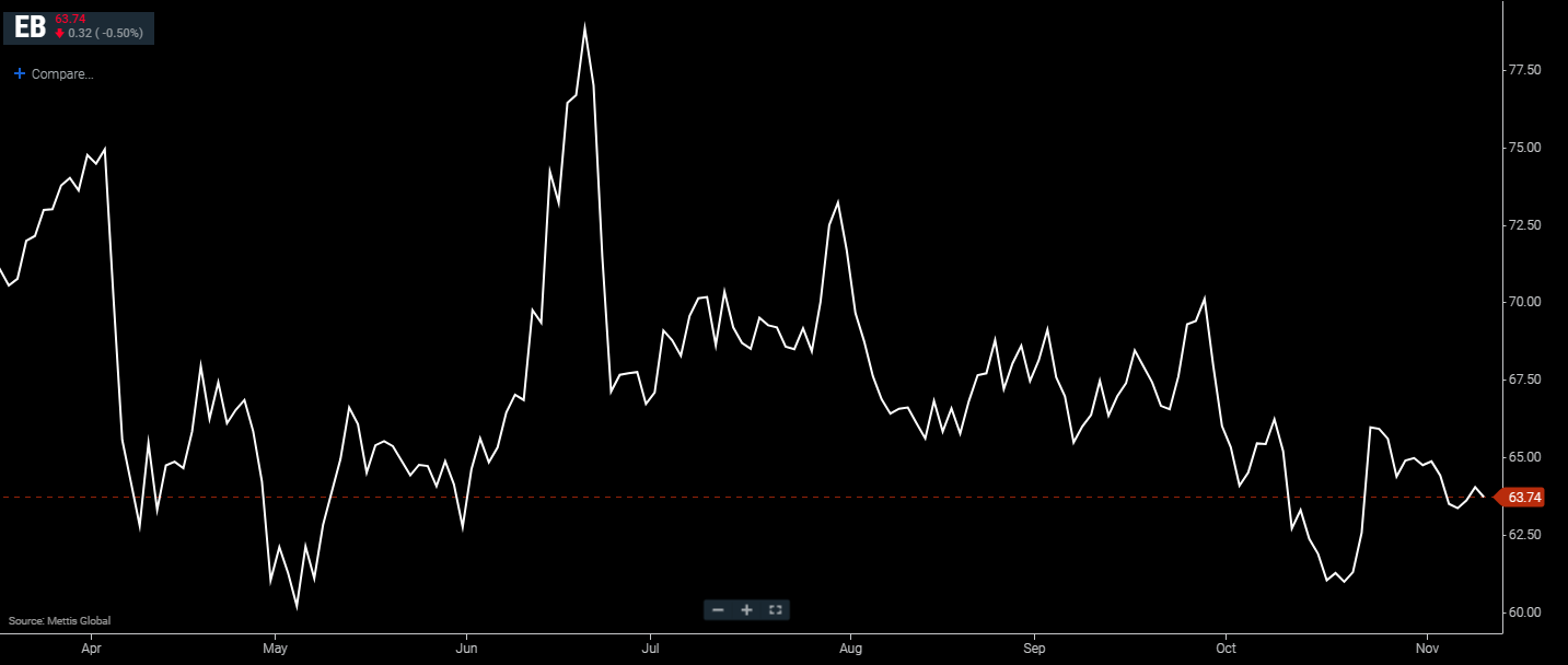 | BRENT CRUDE | 63.87 | 64.06 63.60 | -0.19 -0.30% |