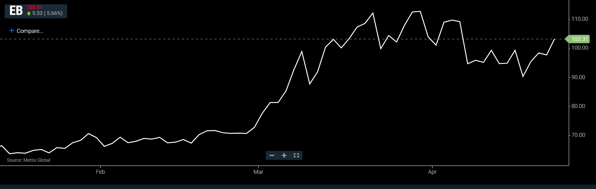 | BRENT CRUDE | 102.93 | 106.15 101.58 | 1.02 1.00% |