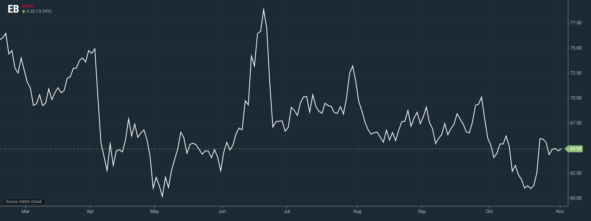 | BRENT CRUDE | 64.71 | 65.32 64.38 | -0.06 -0.09% |