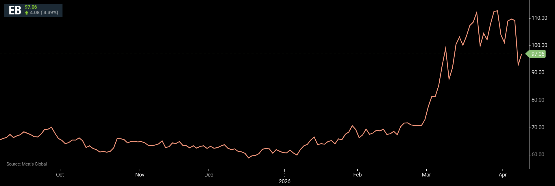 $97.06 per barrel, according to data by Mettis Global.
