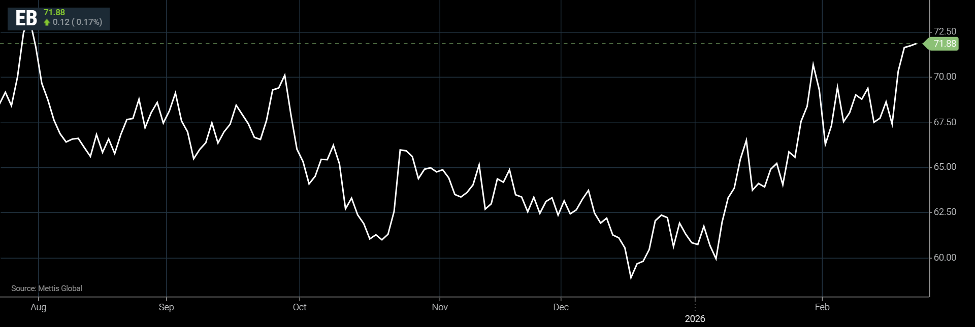 to $71.88 per barrel, according to Mettis Global data.