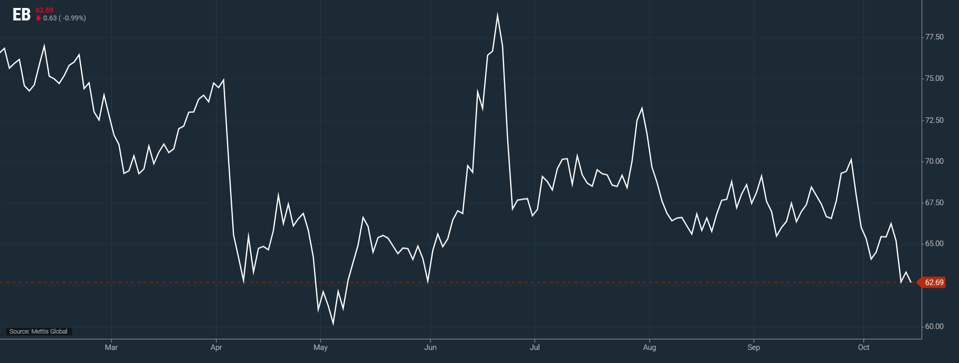 BRENT CRUDE | 62.09 | 63.63 61.74 | -1.23 -1.94% |