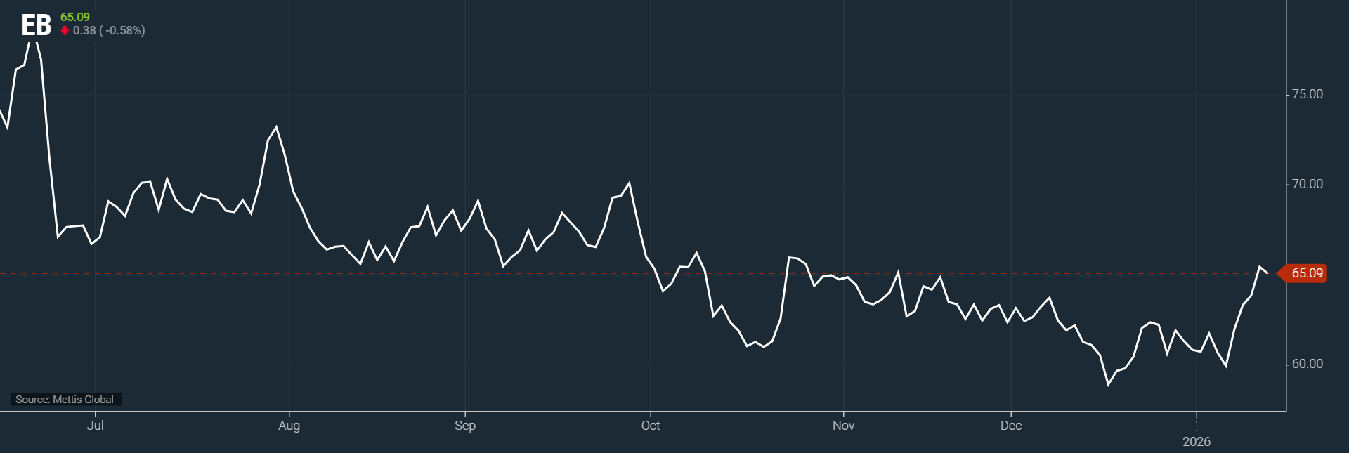 per barrel, according to data by Mettis Global.