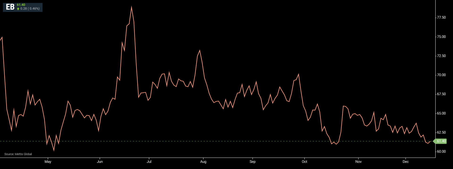 | BRENT CRUDE | 61.34 | 61.50 61.07 | 0.22 0.36% |