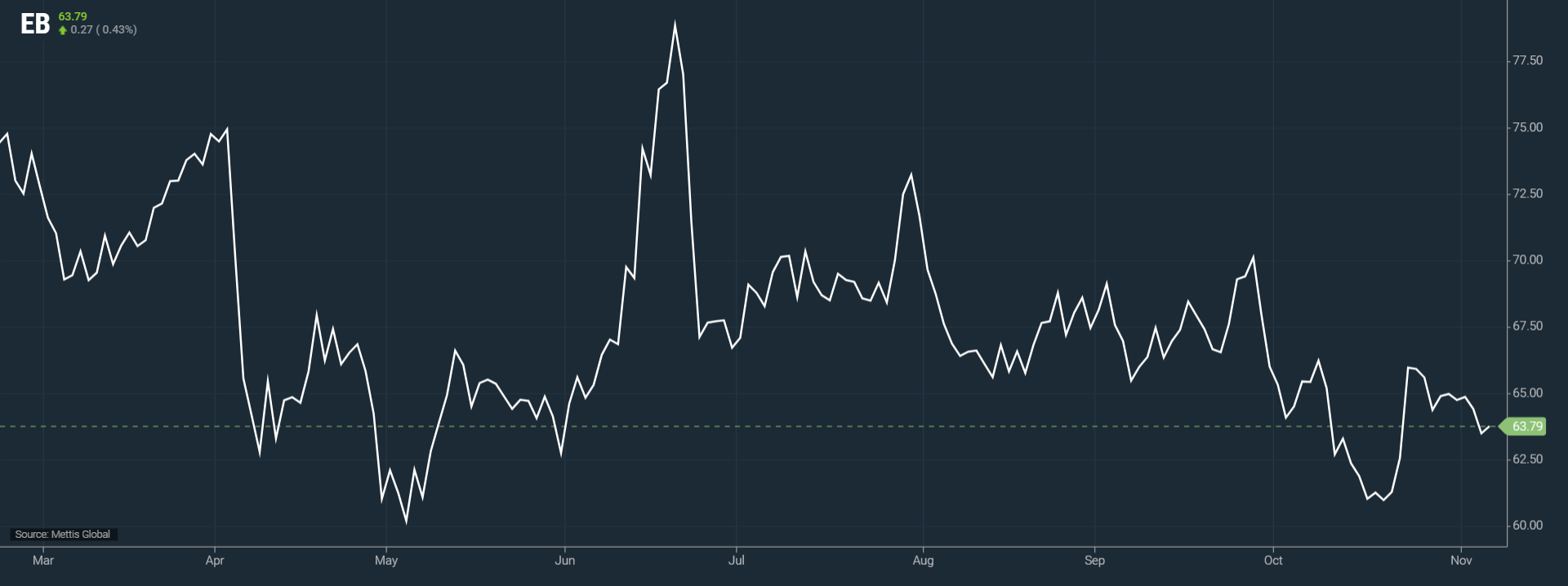 | BRENT CRUDE | 63.85 | 63.86 63.48 | 0.33 0.52% |