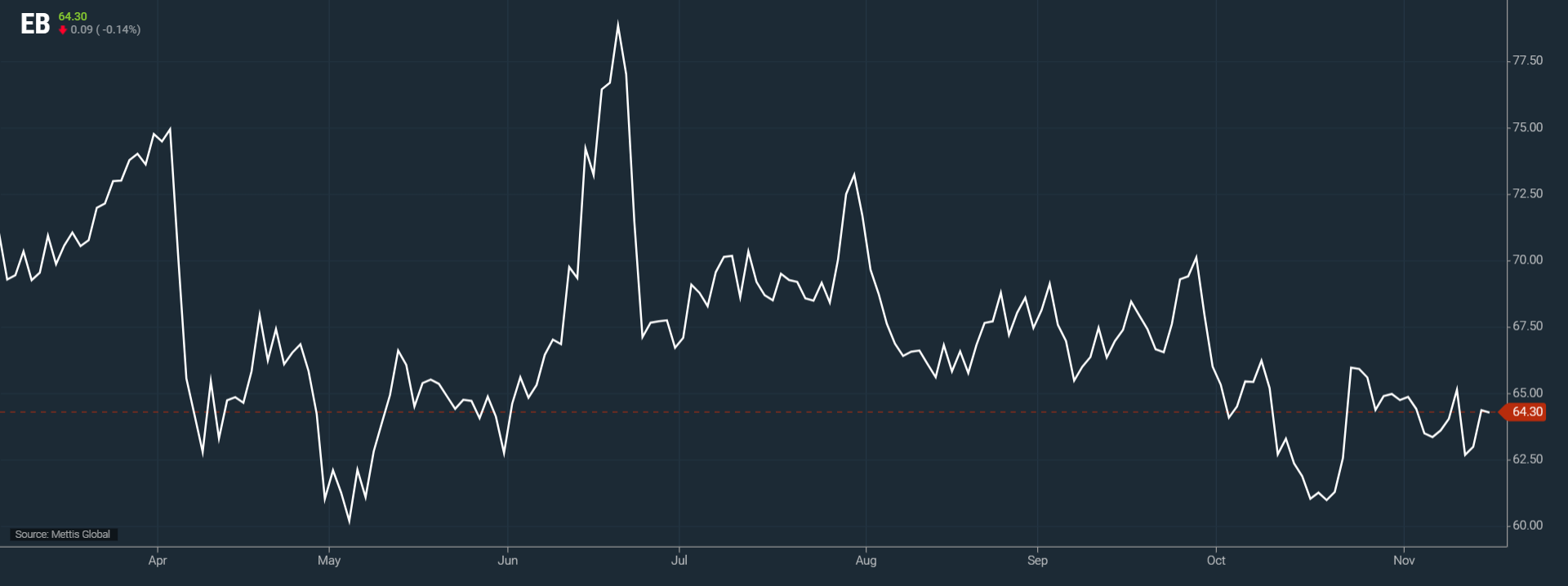 | BRENT CRUDE | 64.41 | 64.72 63.67 | 0.02 0.03% |