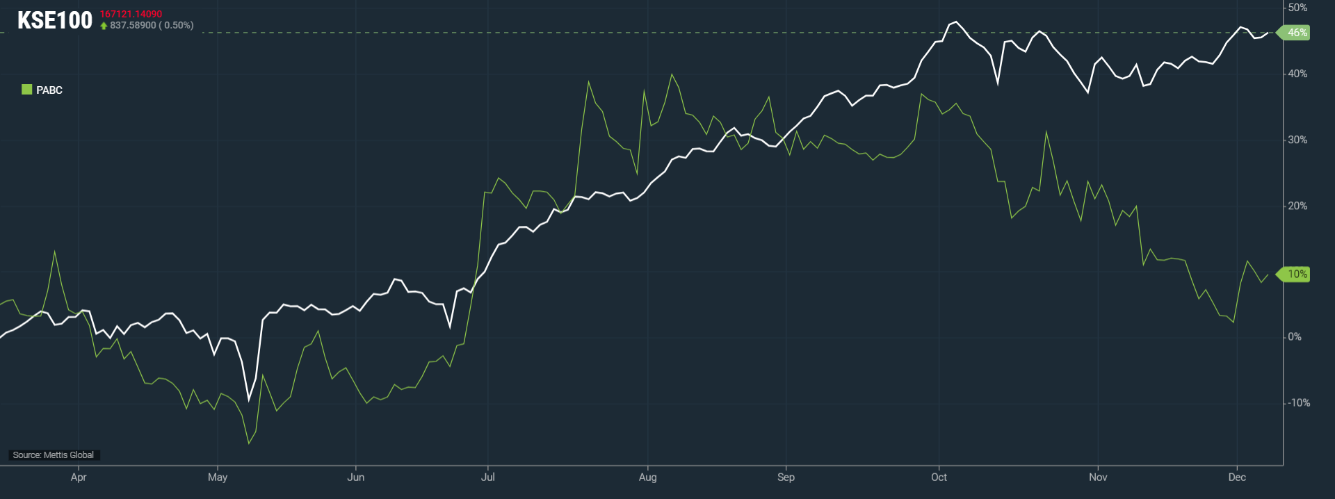 December 05, 2025 (MLN): Pakistan Aluminium Beverage Cans Limited (PSX:PABC) faces a target price of Rs124, down 5% from Rs130, as the prolonged Pakistan-Afghanistan border closure continues to severely impact the company's export-dependent business model.