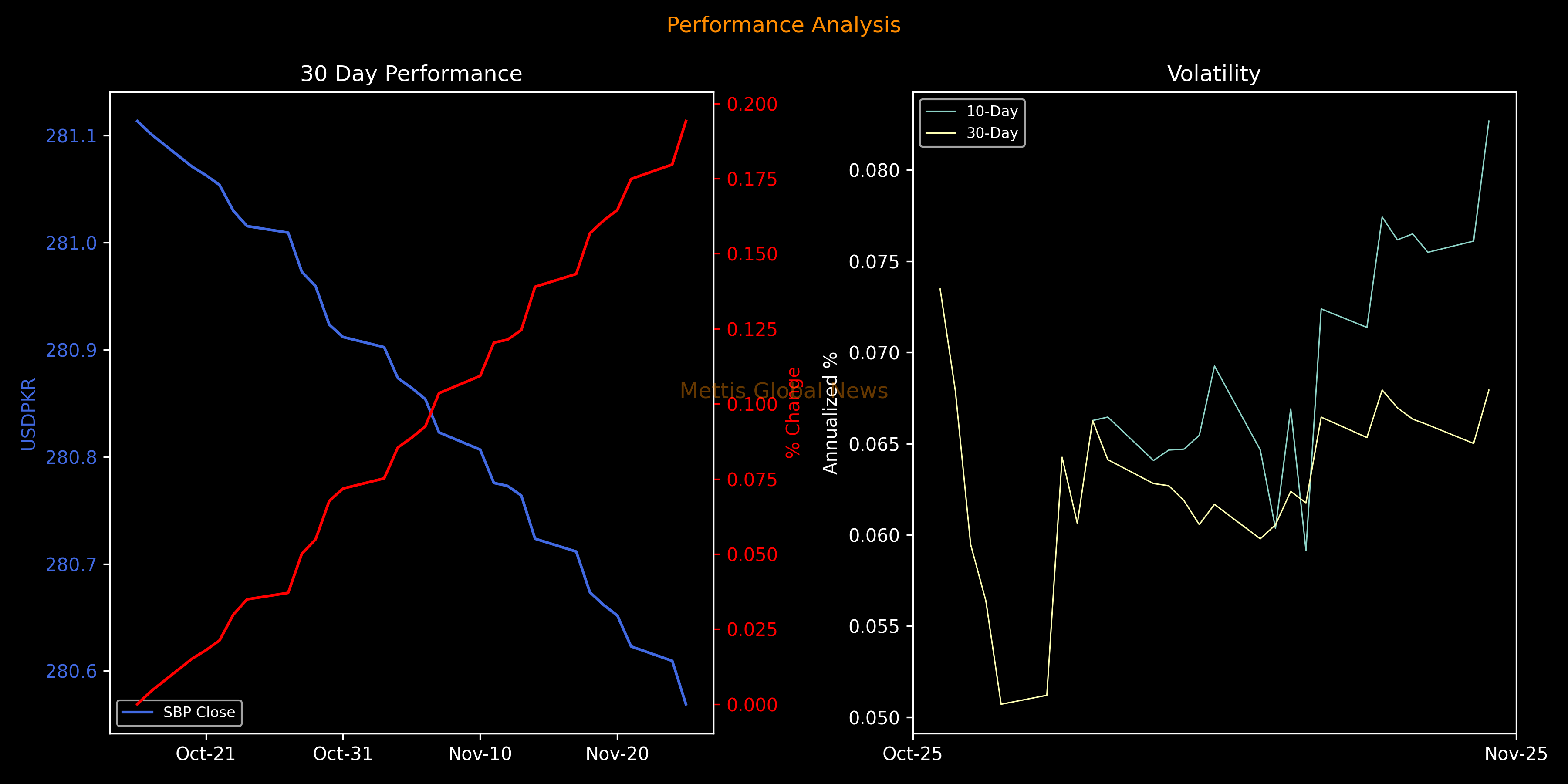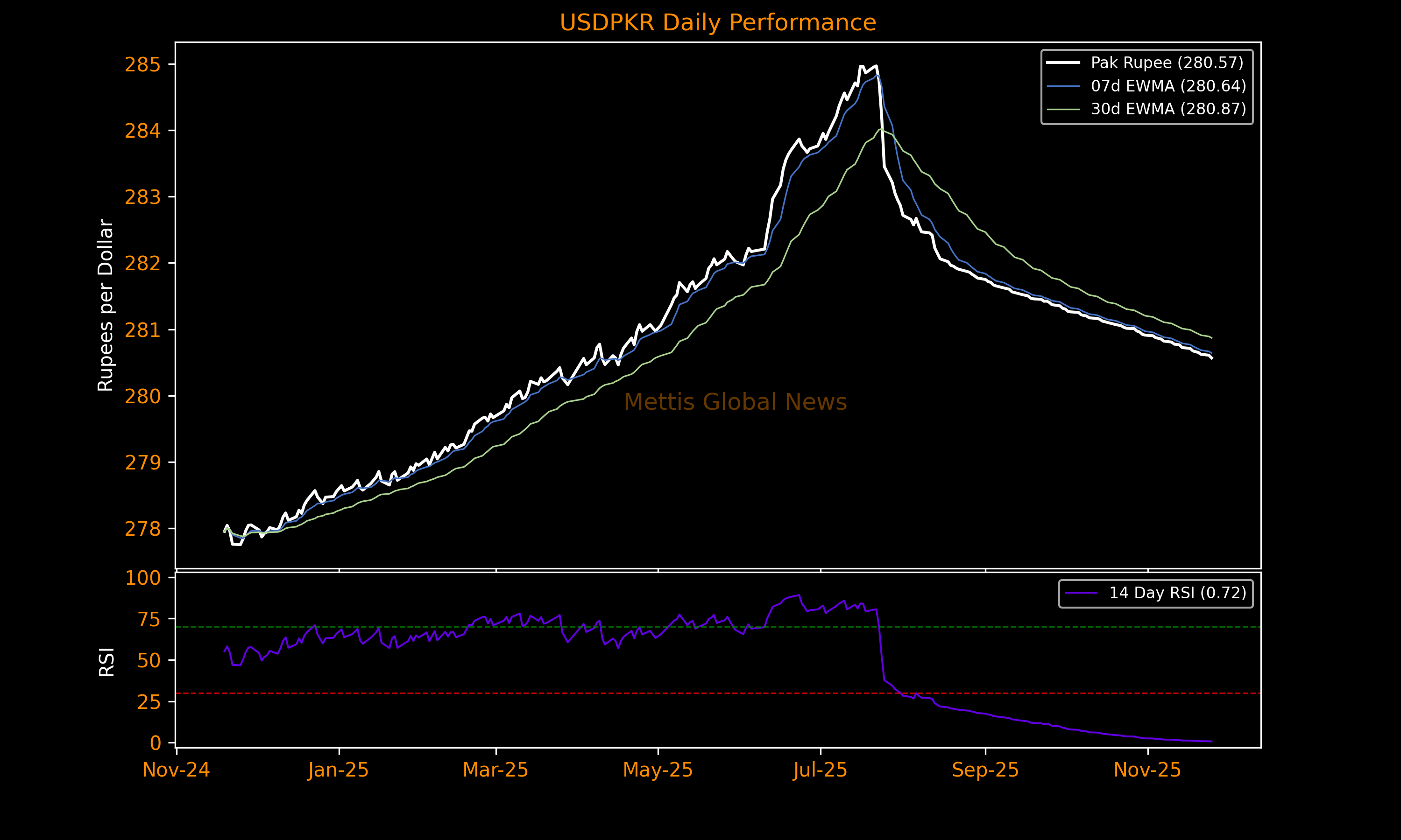 November 25, 2025 (MLN): The Pakistani rupee (PKR) increased by 4.05 paisa against the US dollar in Tuesday's interbank session to settle the trade at PKR 280.57 per USD, compared to previous closing of 280.61.