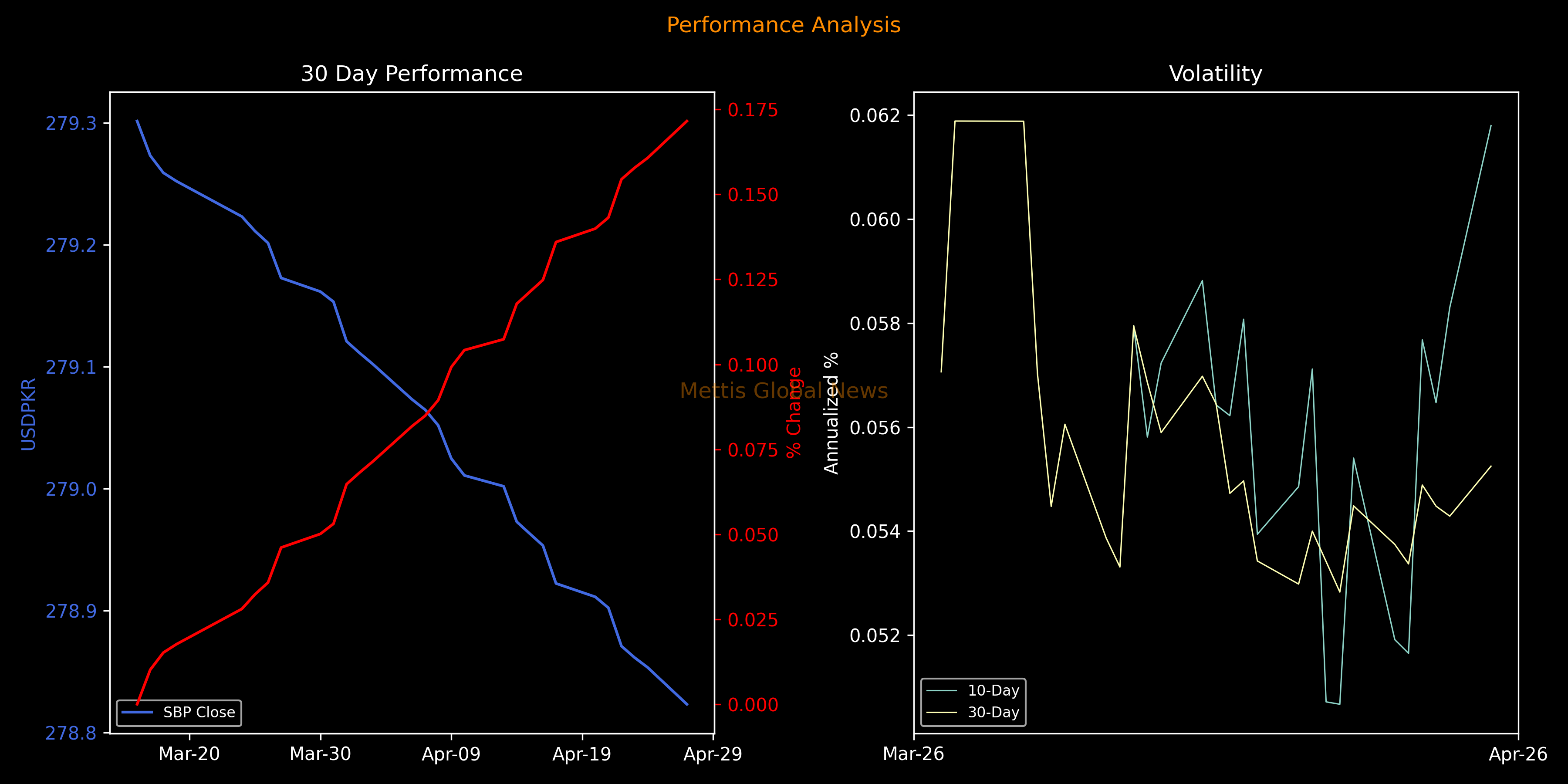the interbank session, settling at PKR 278.82 per dollar compared to Friday's