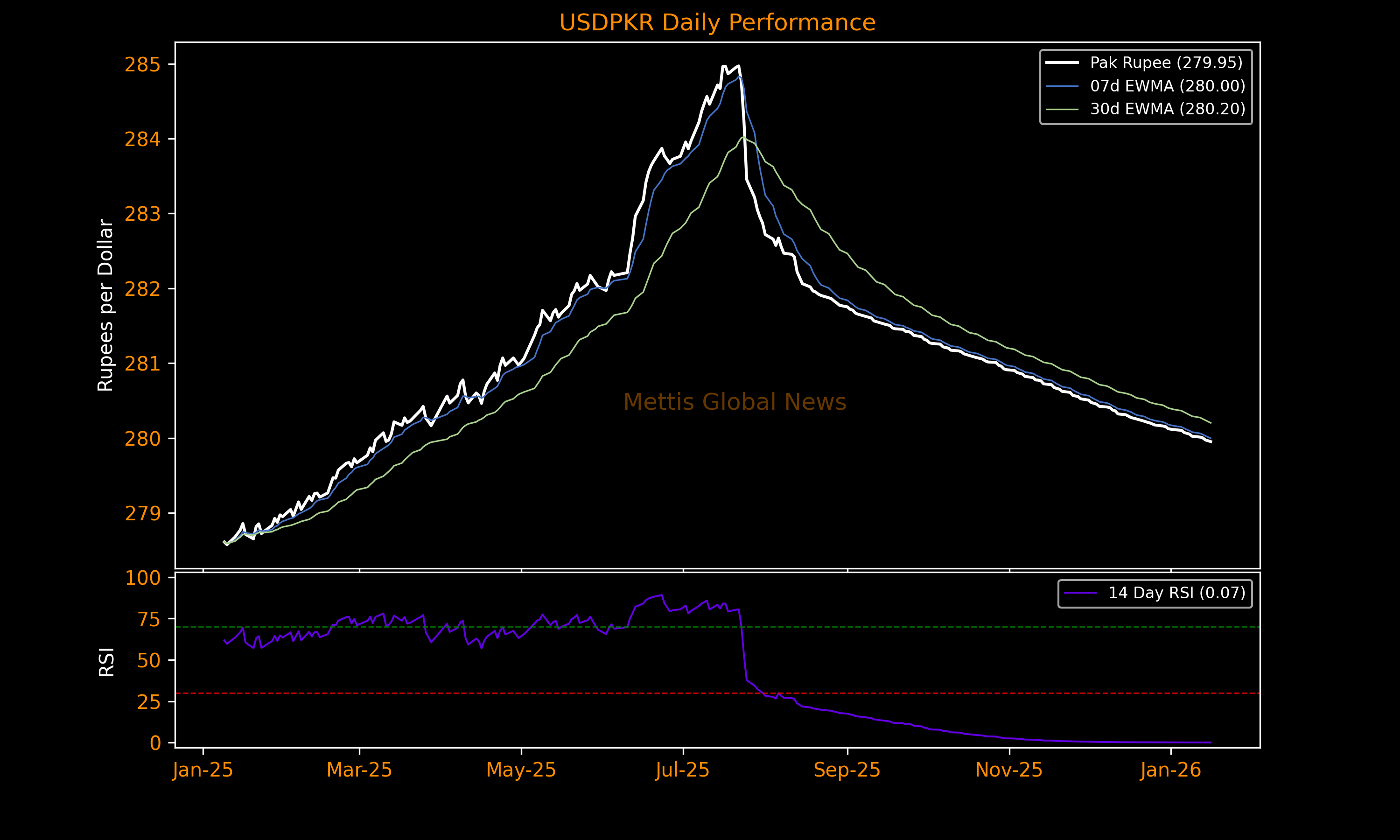 January 16, 2026 (MLN): The Pakistani rupee (PKR) strengthened by 1.15 paisa against the US dollar in Friday's interbank session to settle the trade at PKR 279.95 per USD, compared to previous closing of 279.96.