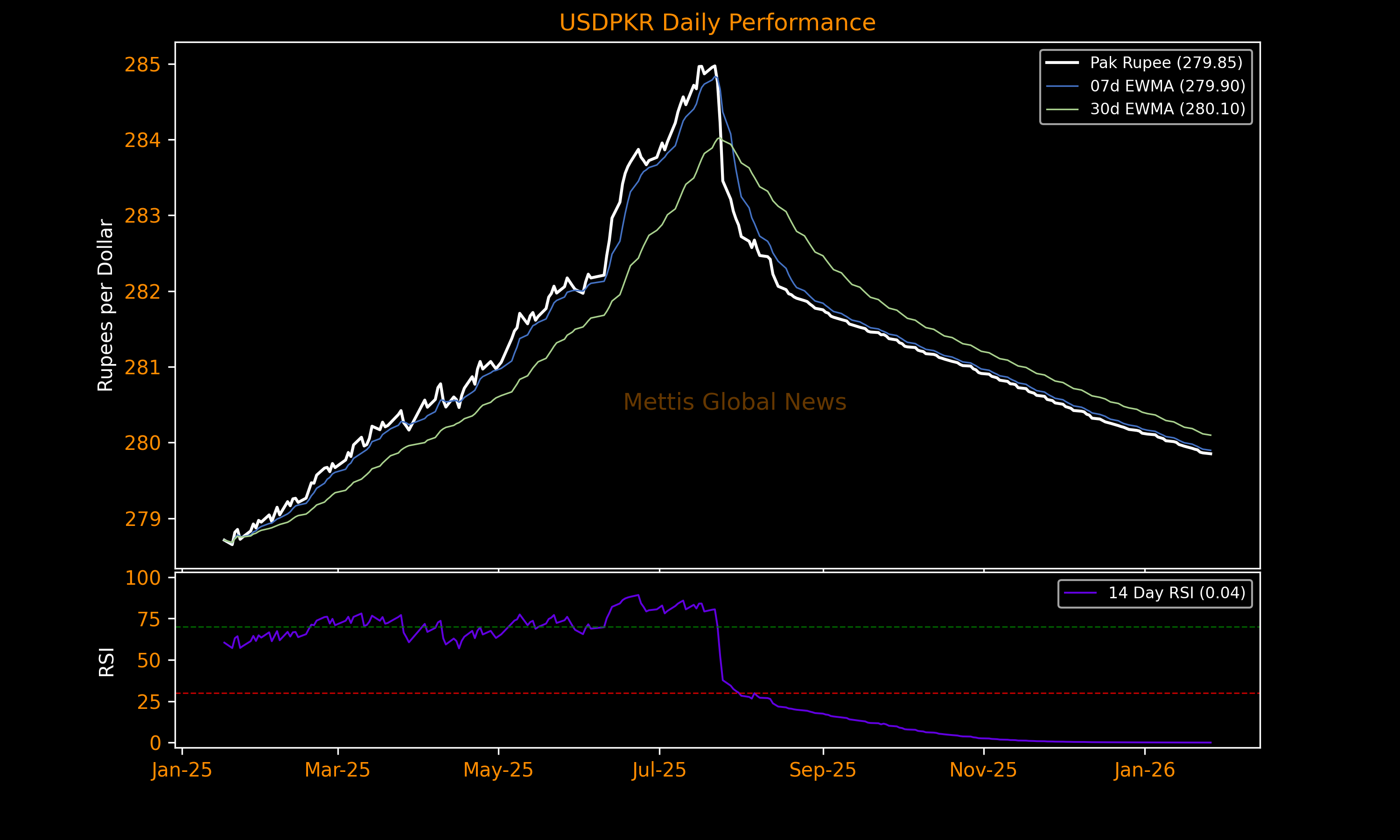 January 26, 2026 (MLN): The Pakistani rupee (PKR) increased by 1.17 paisa against the US dollar in Monday's interbank session to settle the trade at PKR 279.85 per USD, compared to previous closing of 279.86.