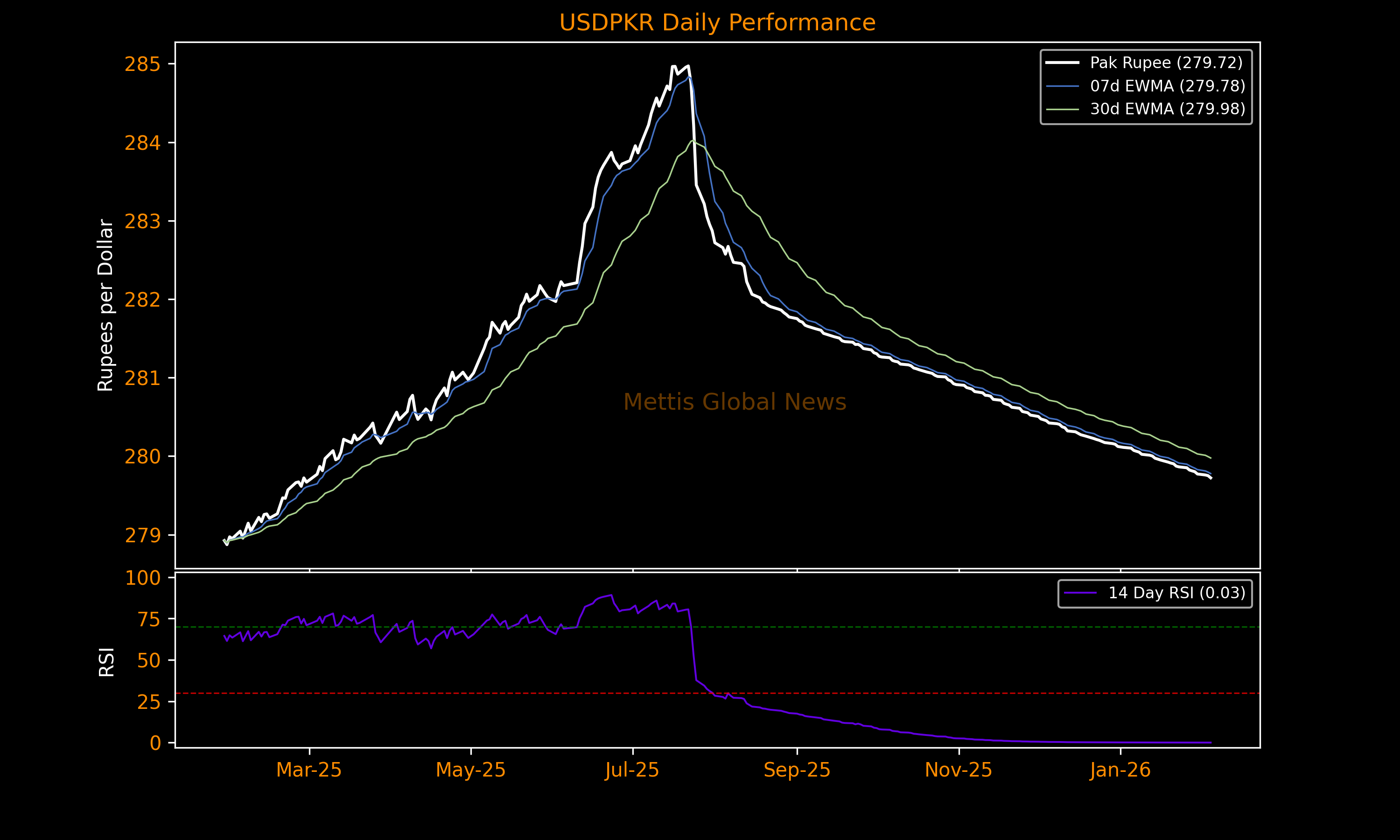 February 04, 2026 (MLN): The Pakistani rupee (PKR) increased by 2.83 paisa against the US dollar in Wednesday's interbank session to settle the trade at PKR 279.72 per USD, compared to previous closing of 279.75.