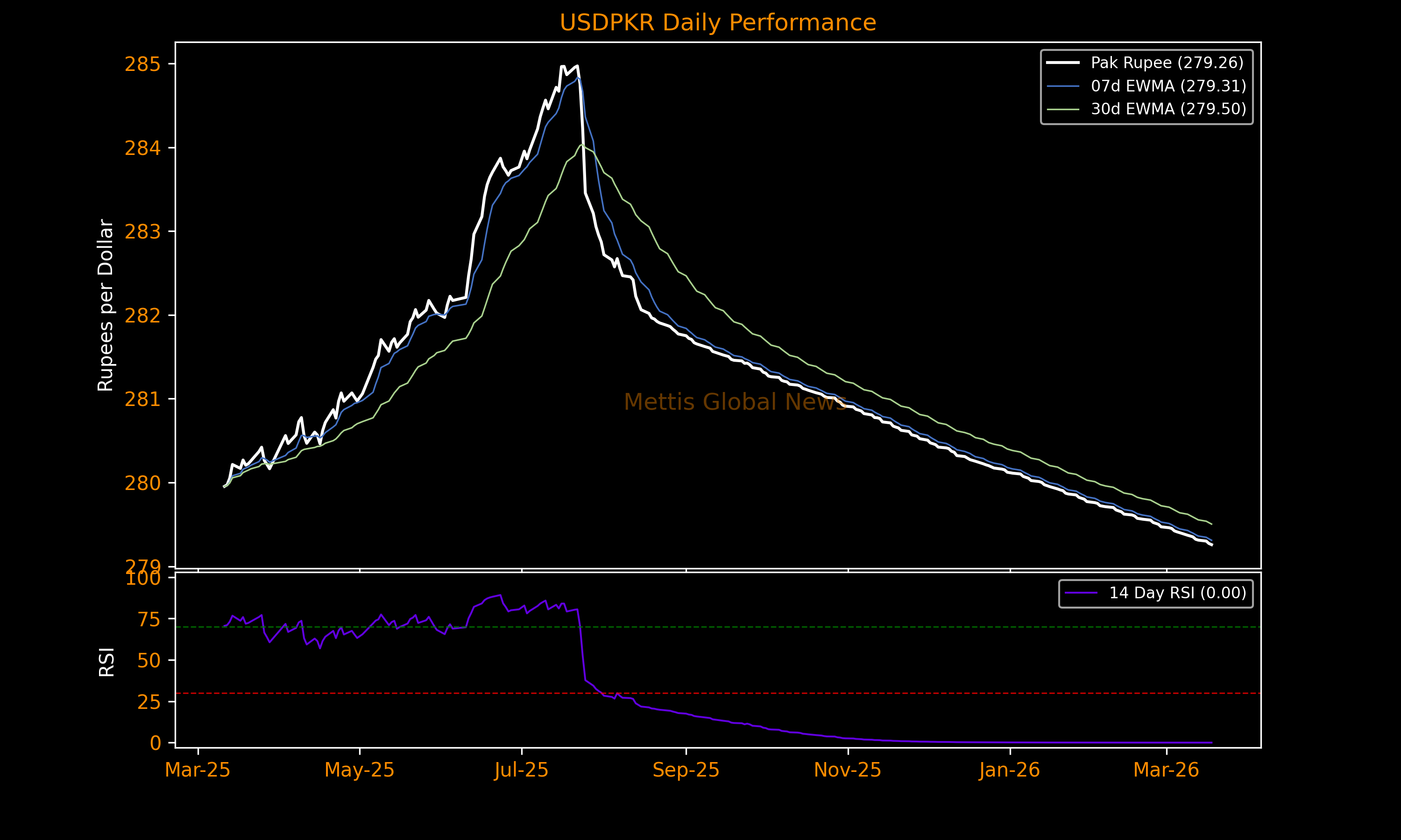 March 18, 2026 (MLN): The Pakistani rupee (PKR) recorded a marginal increase against the US dollar in Wednesday’s interbank session, appreciating by 1.41 paisa (0.01%) to settle at 279.26, compared to the previous close of 279.27.
