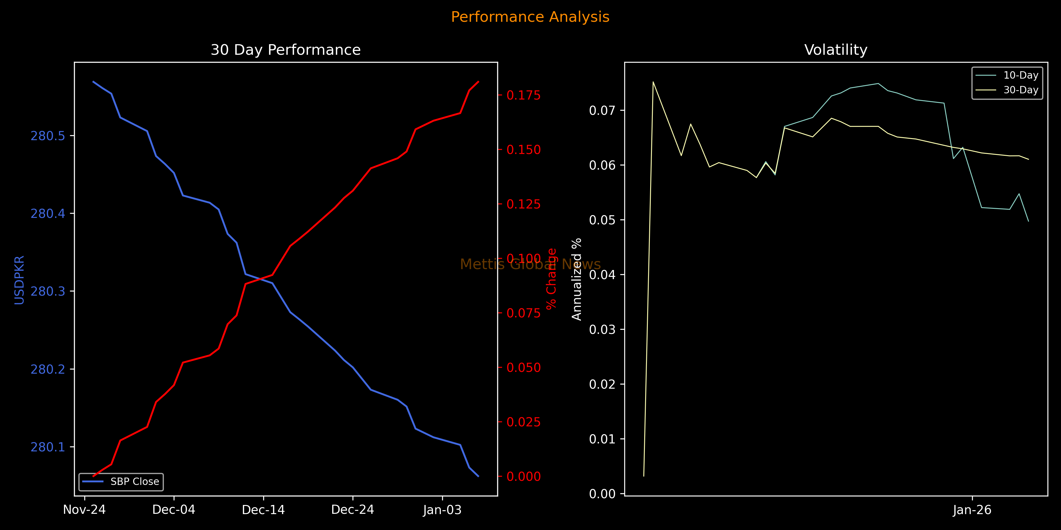 January 07, 2026 (MLN): The Pakistani rupee (PKR) remained mostly flat with a slight rise by 1.10 paisa against the US dollar in Wednesday's interbank session to settle the trade at PKR 280.06 per USD, compared to previous closing of 280.07.
