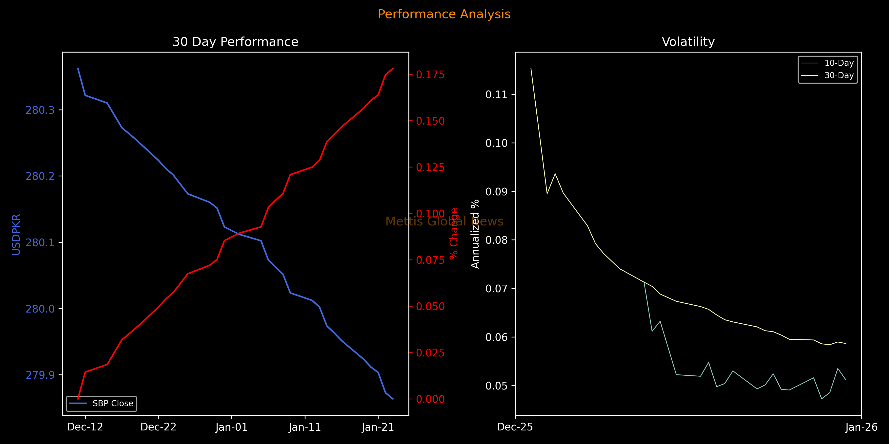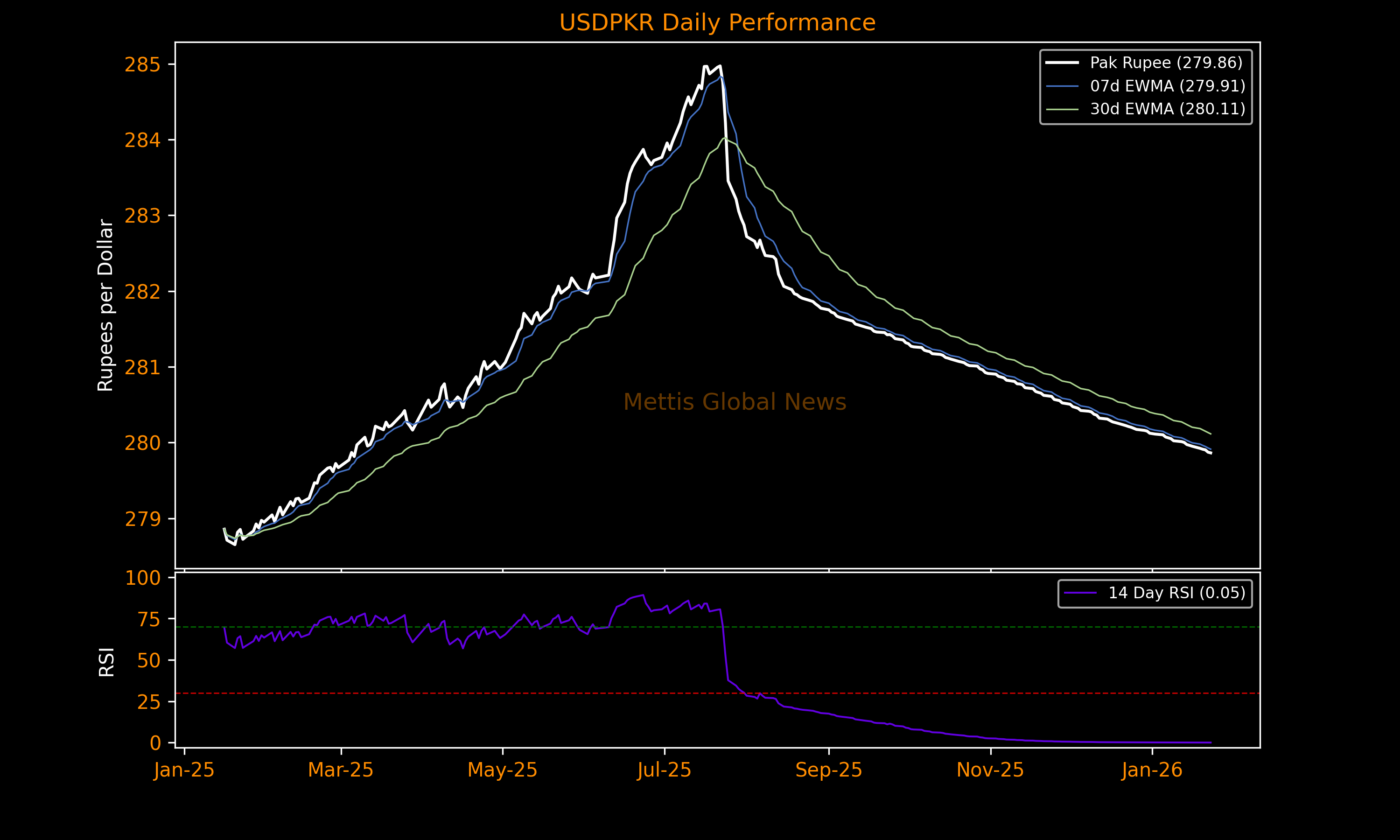 January 23, 2026 (MLN): The Pakistani rupee (PKR) gained by 0.92 paisa against the US dollar in Friday's interbank session to settle the trade at PKR 279.86 per USD, compared to previous closing of 279.87.