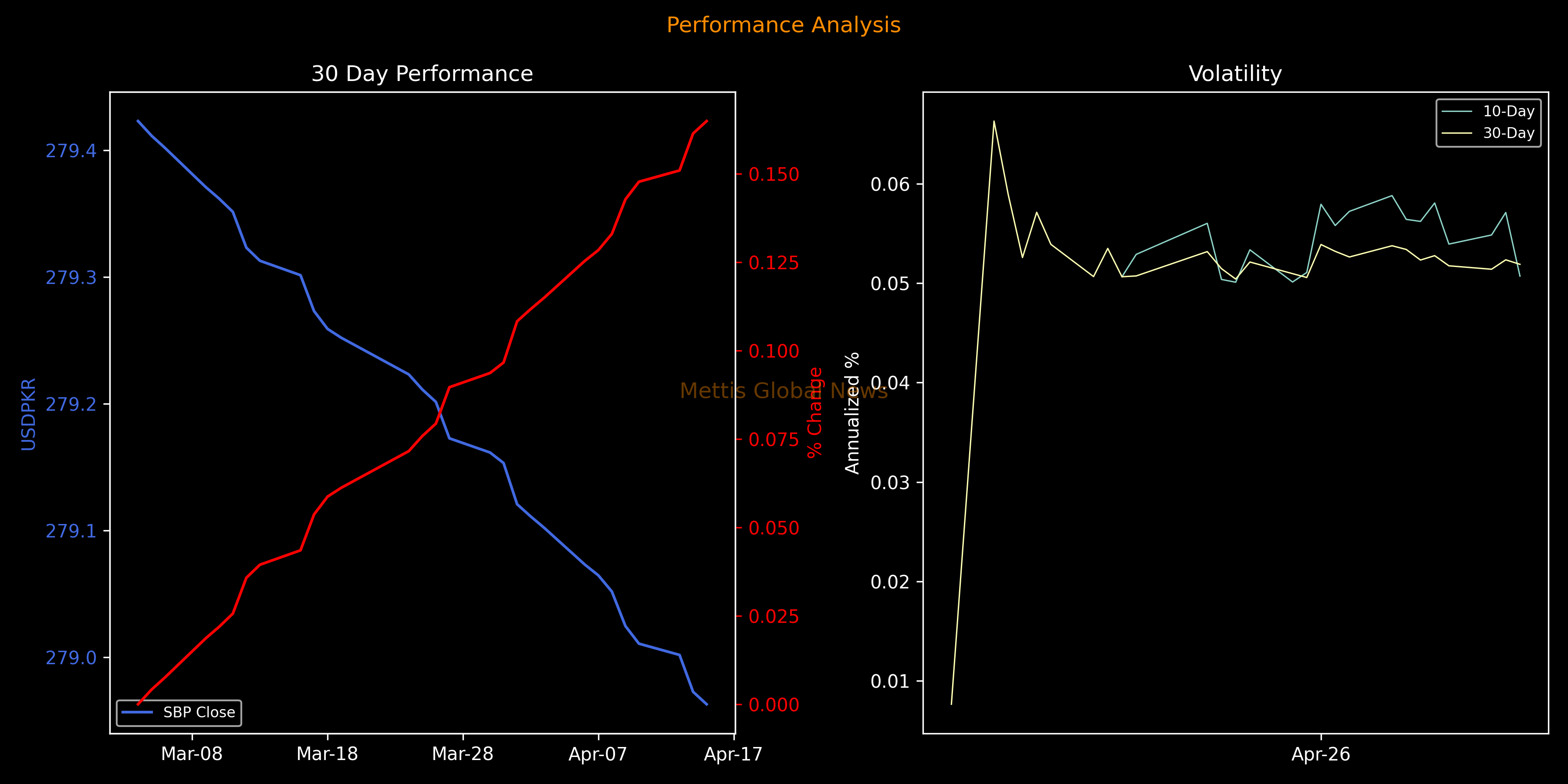 April 15, 2026 (MLN):The Pakistani rupee (PKR) remained largely flat against the US dollar in Wednesday’s interbank session, closing at PKR 278.96 per USD compared to the previous day’s closing of 278.97.