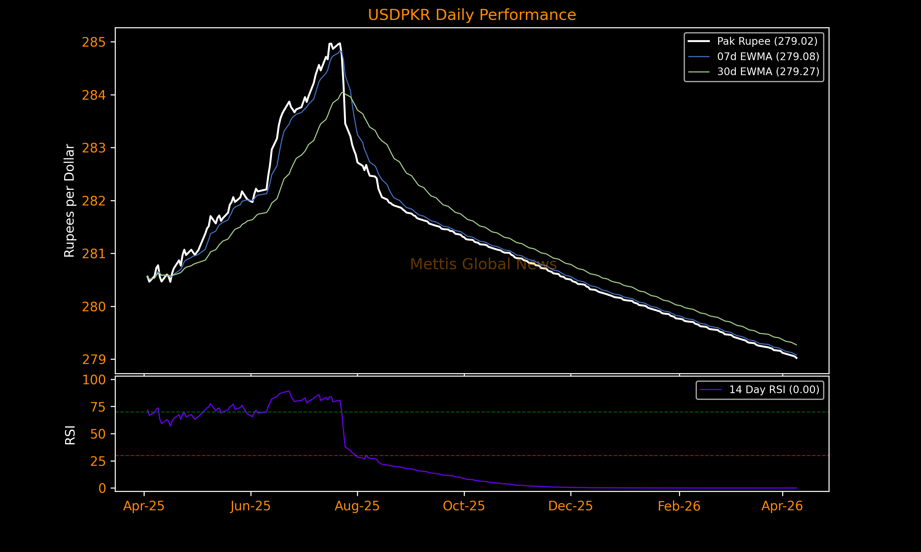 April 09, 2026 (MLN): The Pakistani rupee (PKR) gained 2.72 paisa against the US dollar in Thursday’s interbank session, closing at PKR 279.02 per USD, slightly higher than the previous close of 279.05.