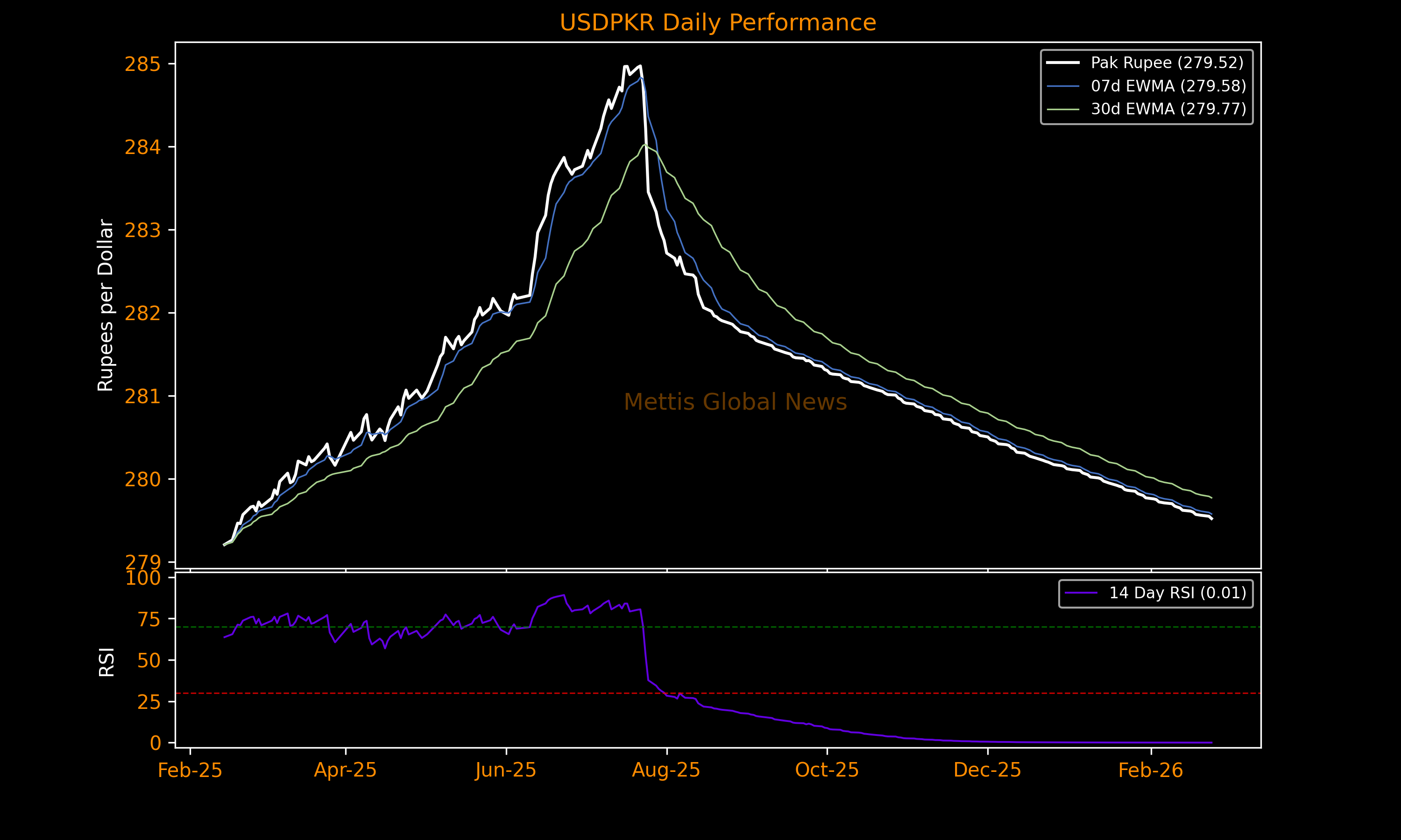 February 24, 2026 (MLN): The Pakistani rupee (PKR) posted a marginal gain against the US dollar in Tuesday’s interbank trading, appreciating by 2.83 paisa to close at 279.52 per dollar, compared with the previous session’s close of 279.55.