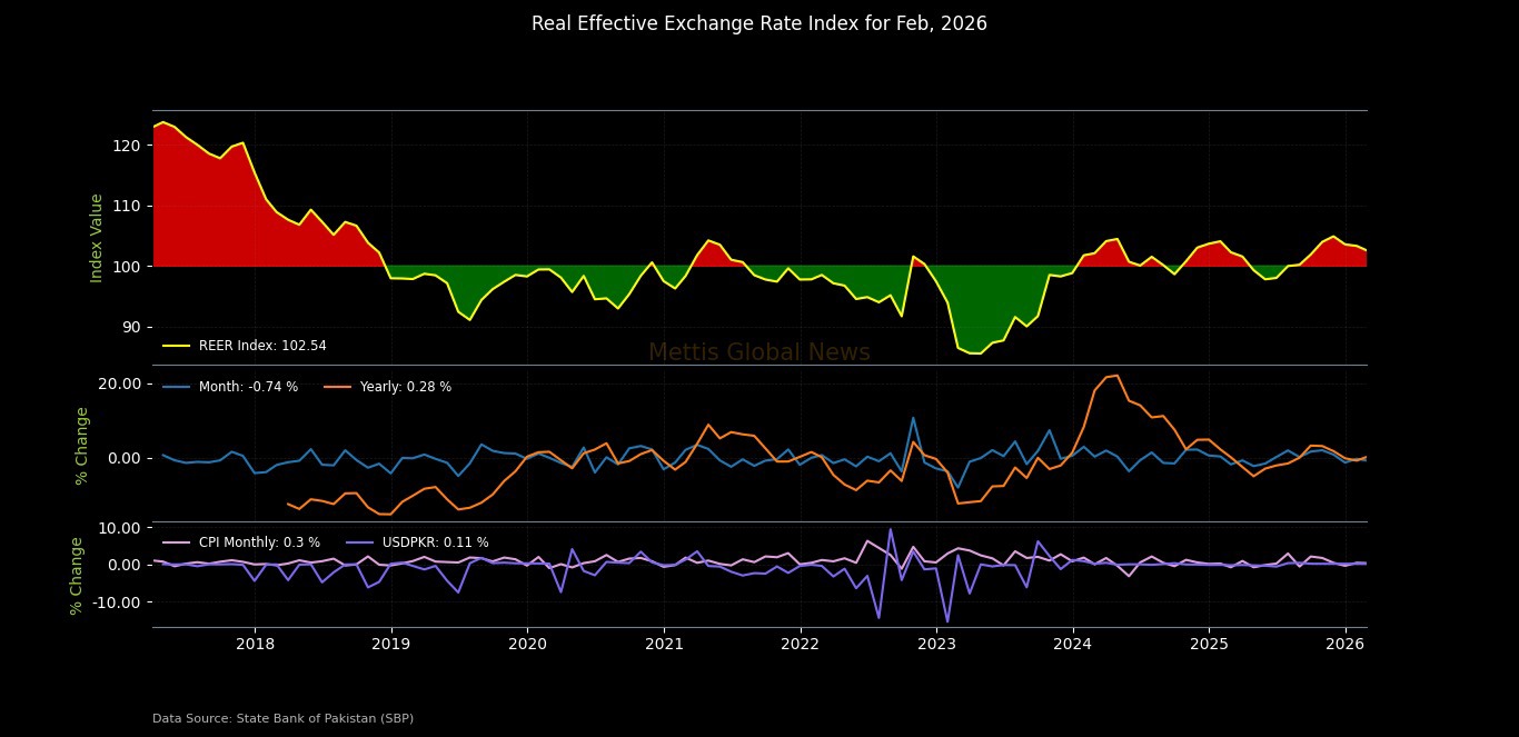 PKR’s REER index decreases to 102.54 in Feb