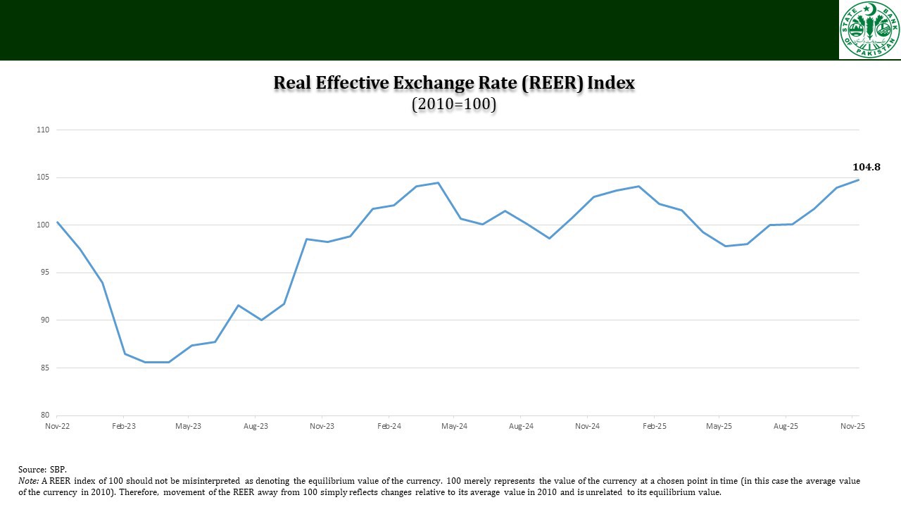 exchange rate (REER) increased to 104.761 in November 2025, up from 103.95 in October