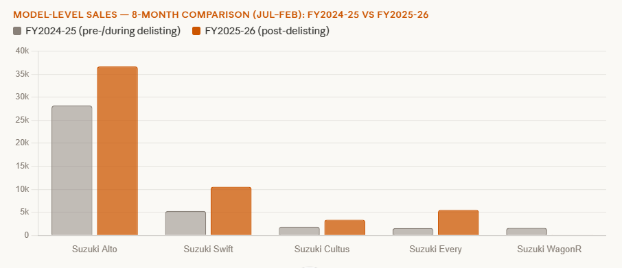 - Suzuki WagonR — discontinued (only 53 clearance sales vs 1,608)