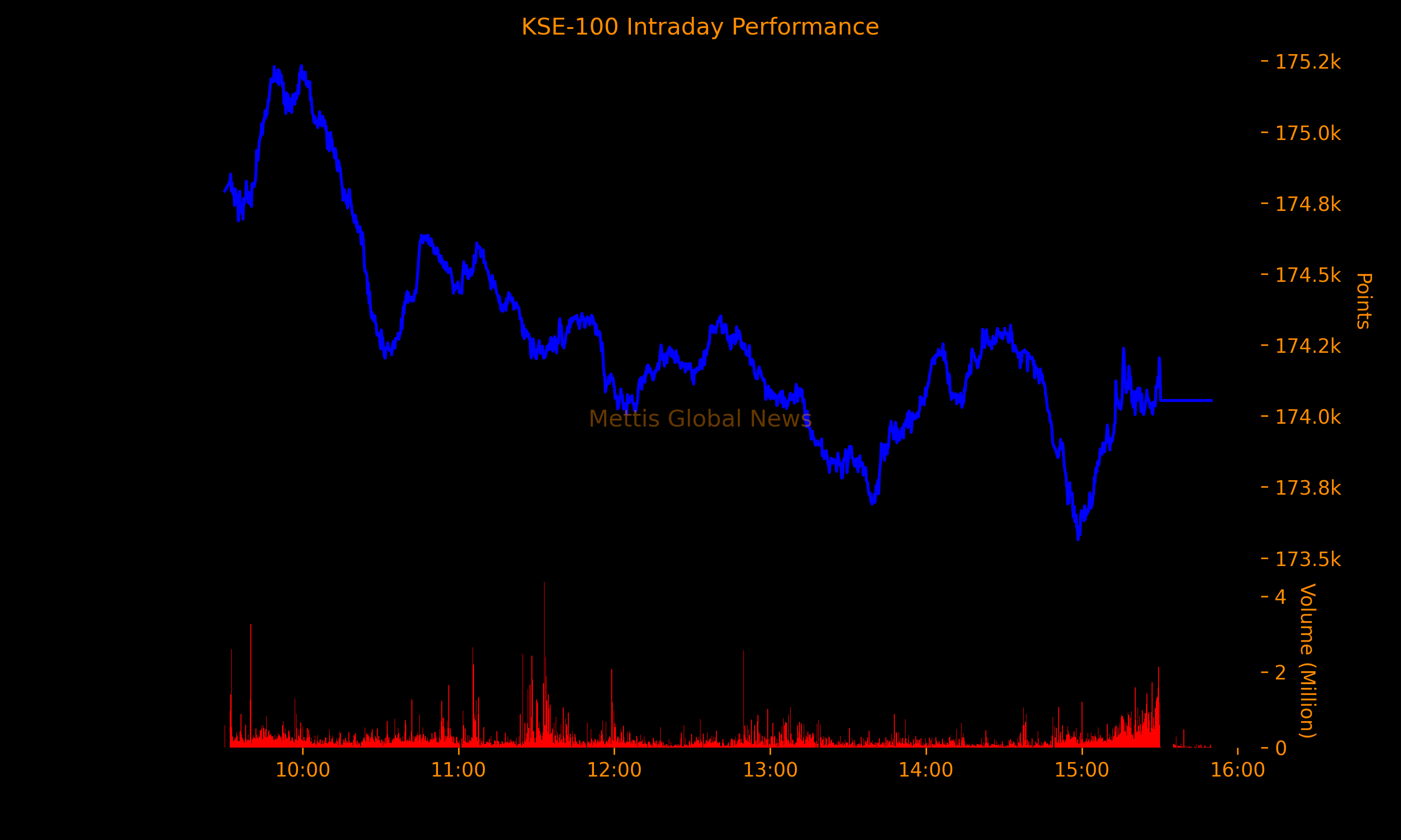 December 31, 2025 (MLN): The benchmark KSE-100 Index concluded Wednesday’s session and the final trading day of the year at 174,054.32, showing a decrease of 418.47 points or 0.24%.