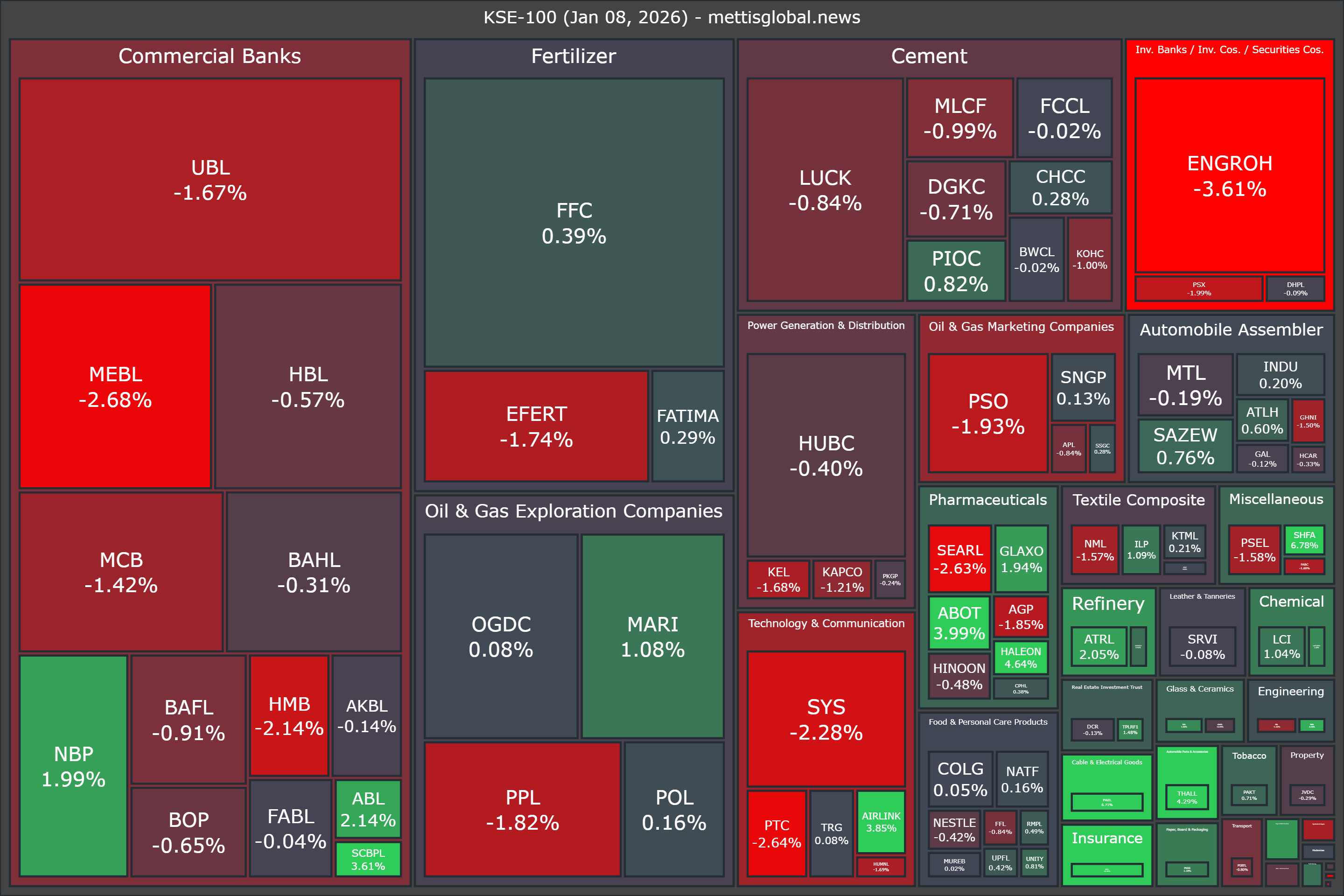 In terms of index-point contributions, companies that dragged the index lower were ENGROH (-315.02pts), UBL (-246.90pts), MEBL (-204.69pts), SYS (-117.12pts), and PPL (-102.13pts).